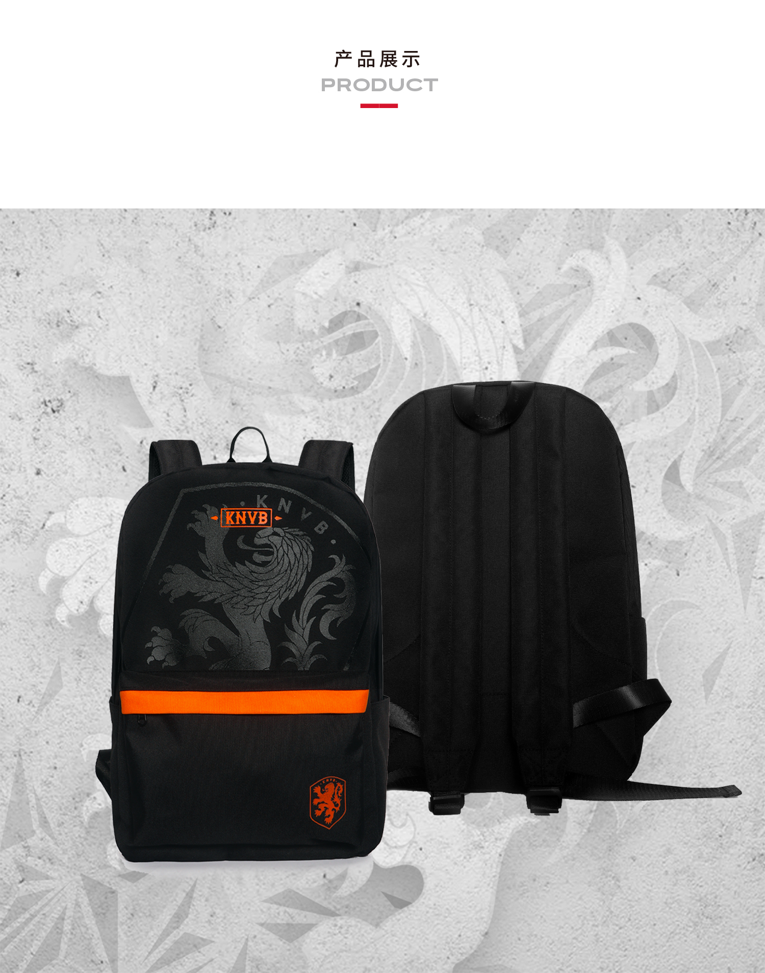 荷兰国 家队官方商品丨新款暗纹黑色印花双肩包 世界杯球迷周边