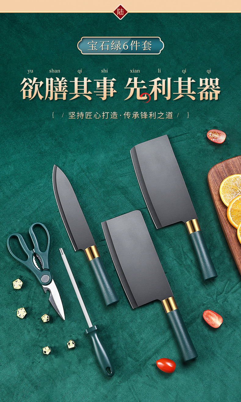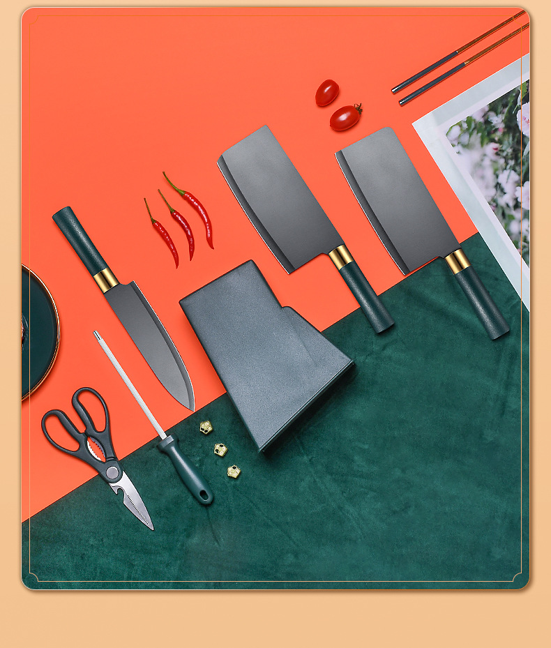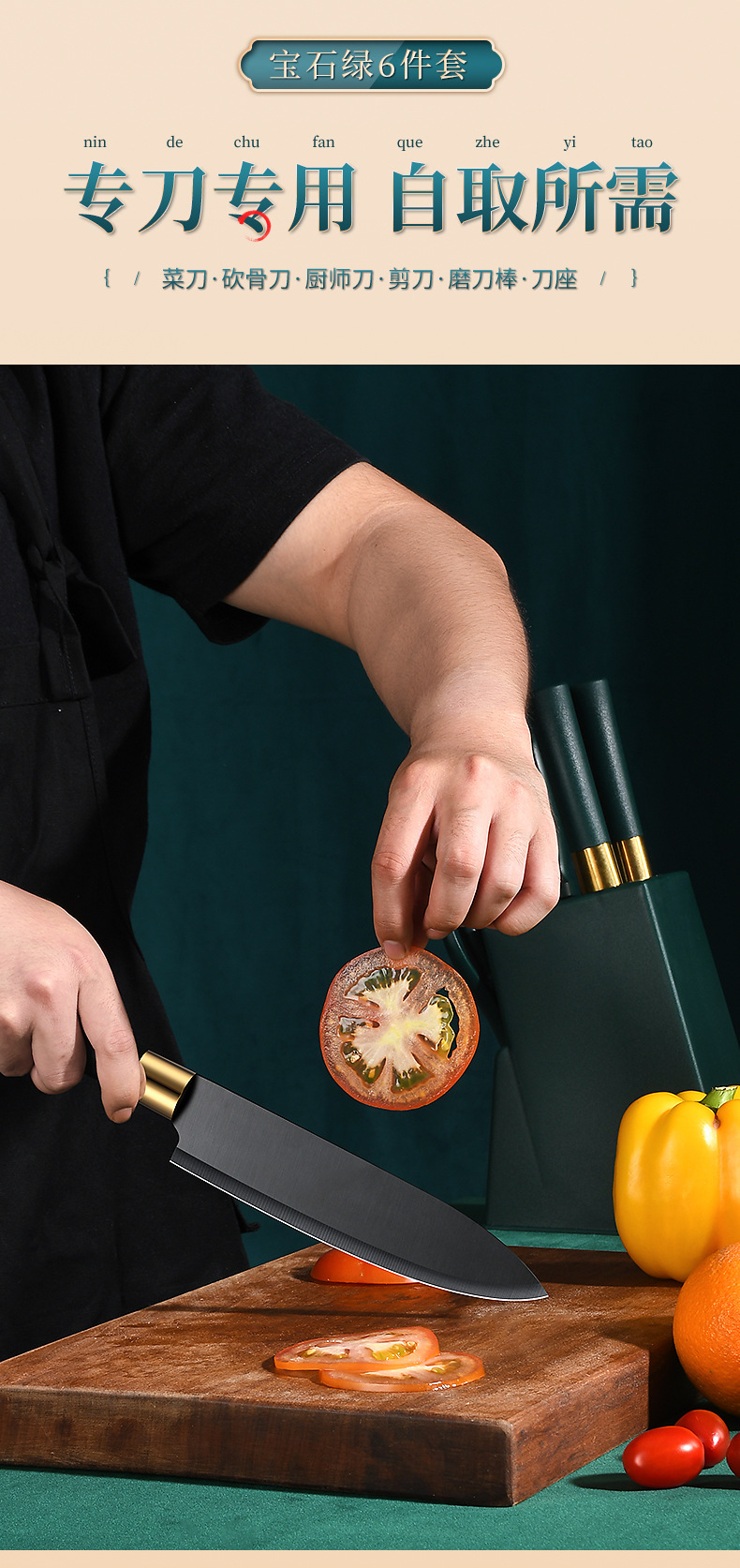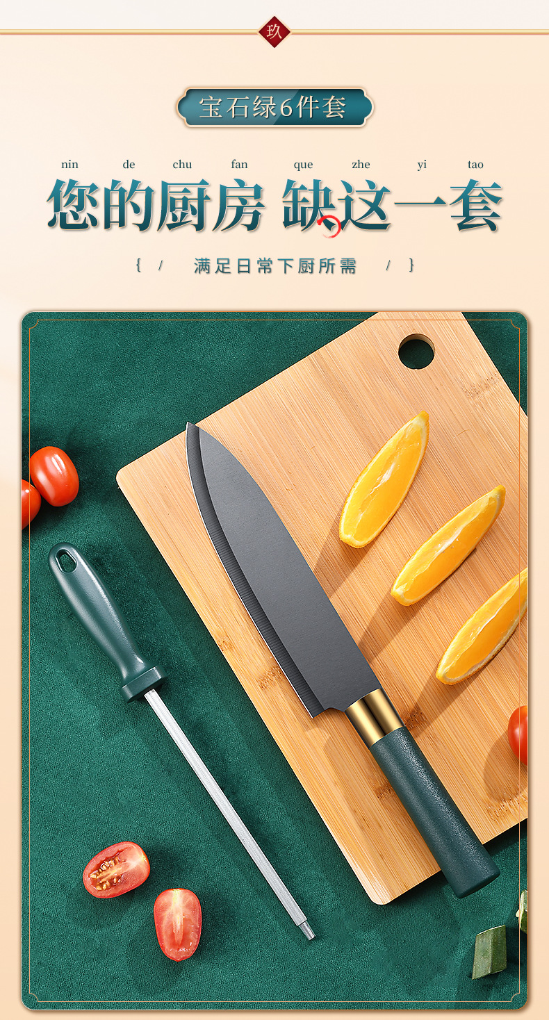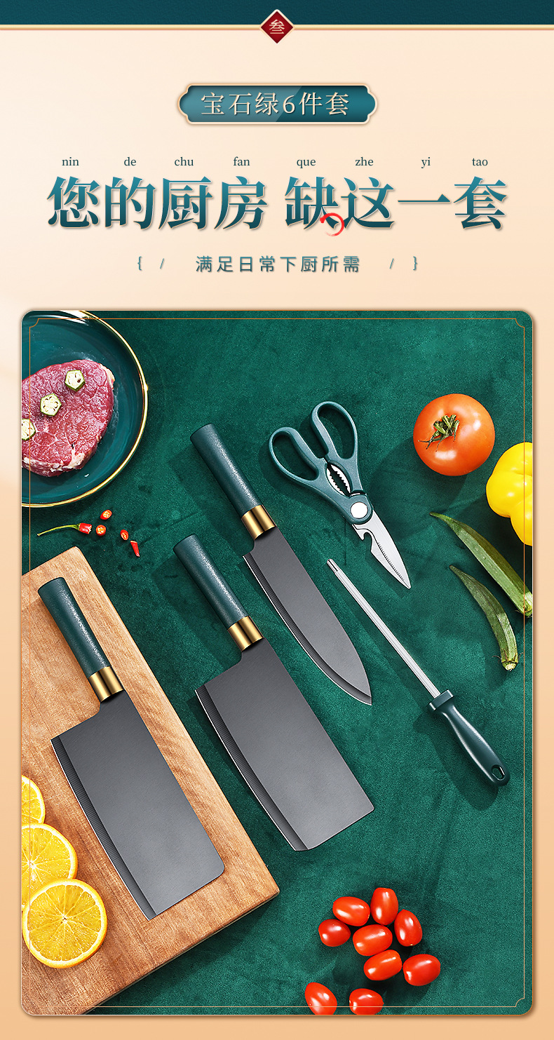 「国潮六件套!礼盒装」刀具套装厨房菜刀组合厨具用品全套不锈钢家用水果刀厨师刀黑锋刀
