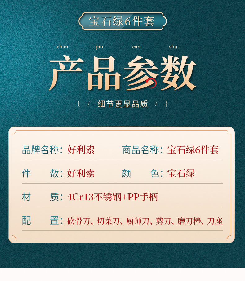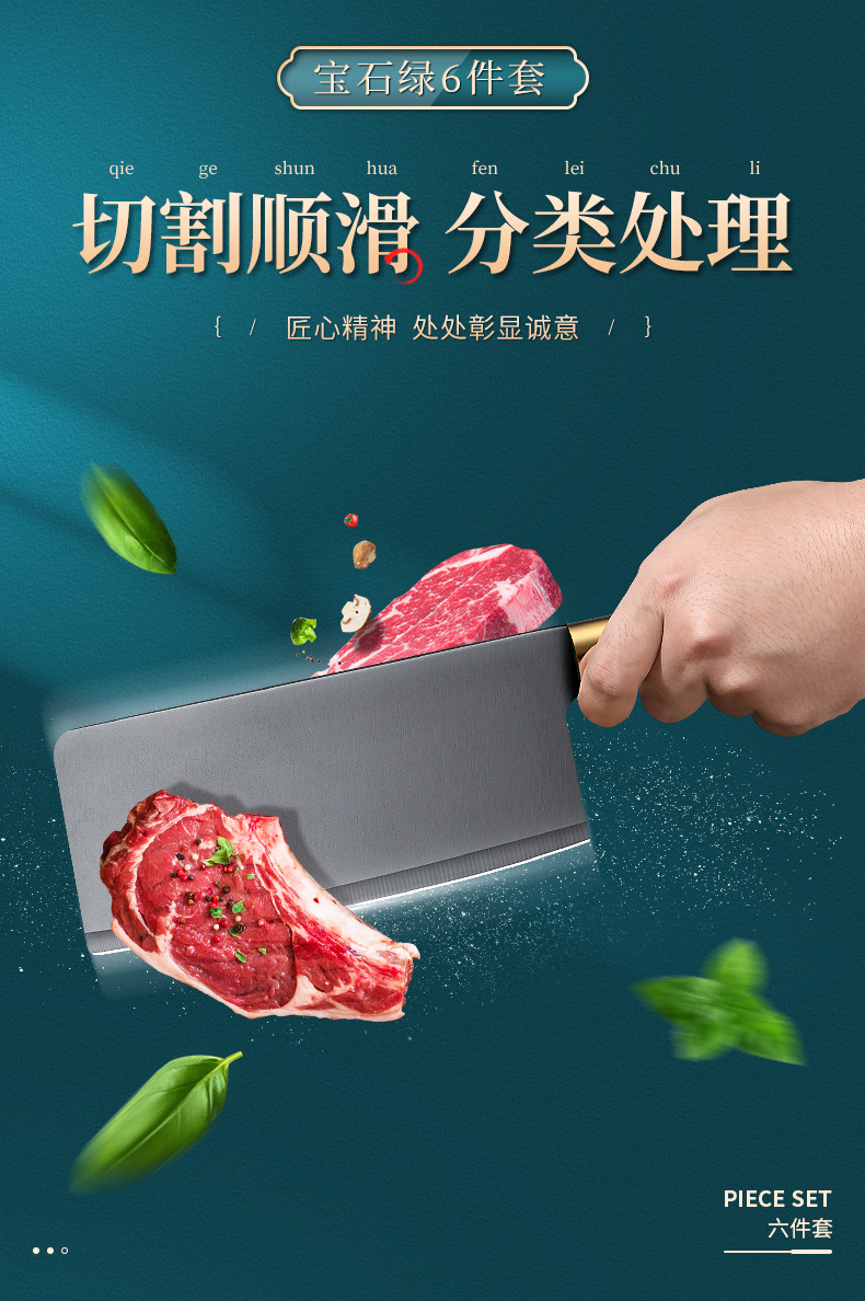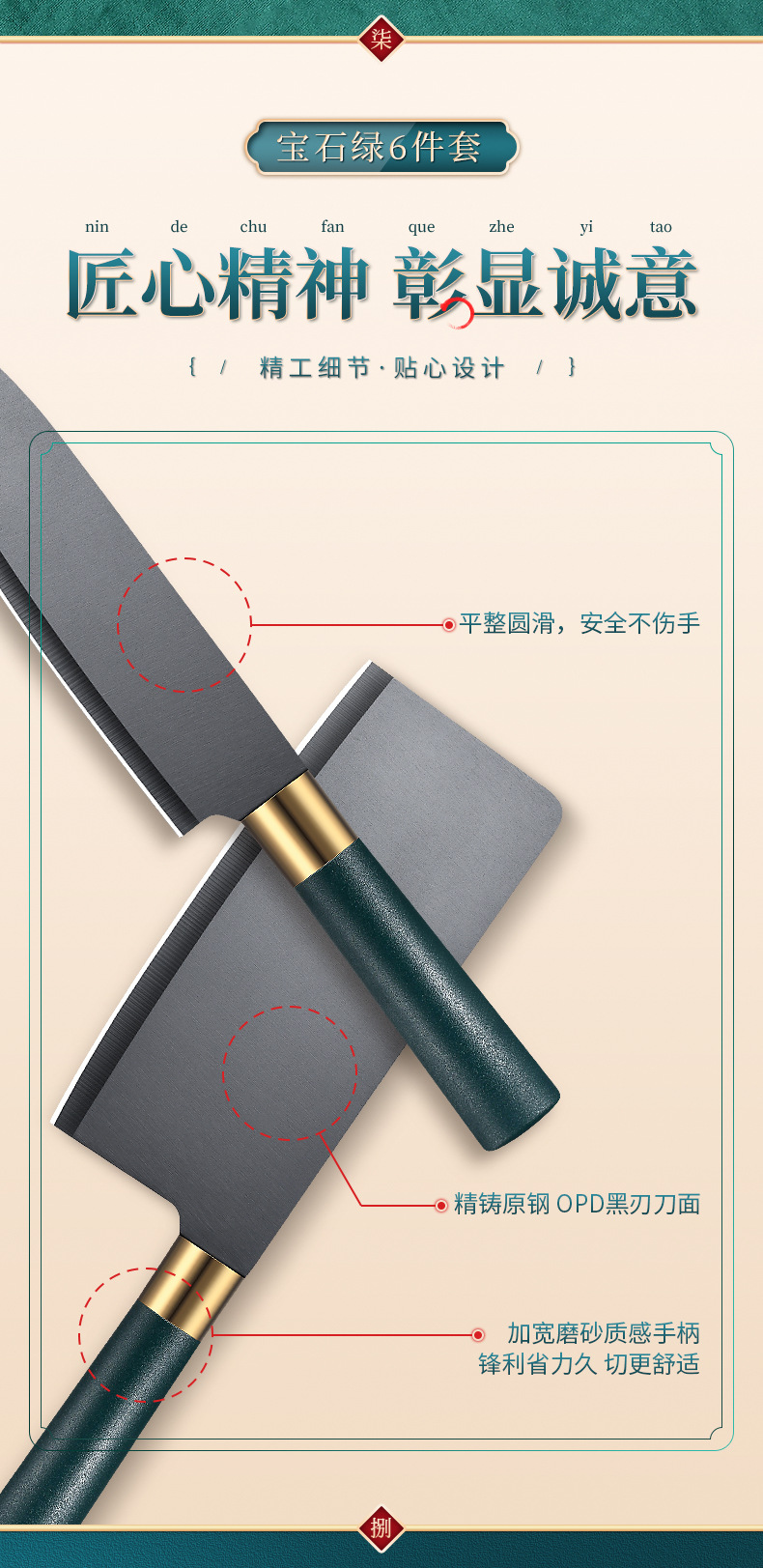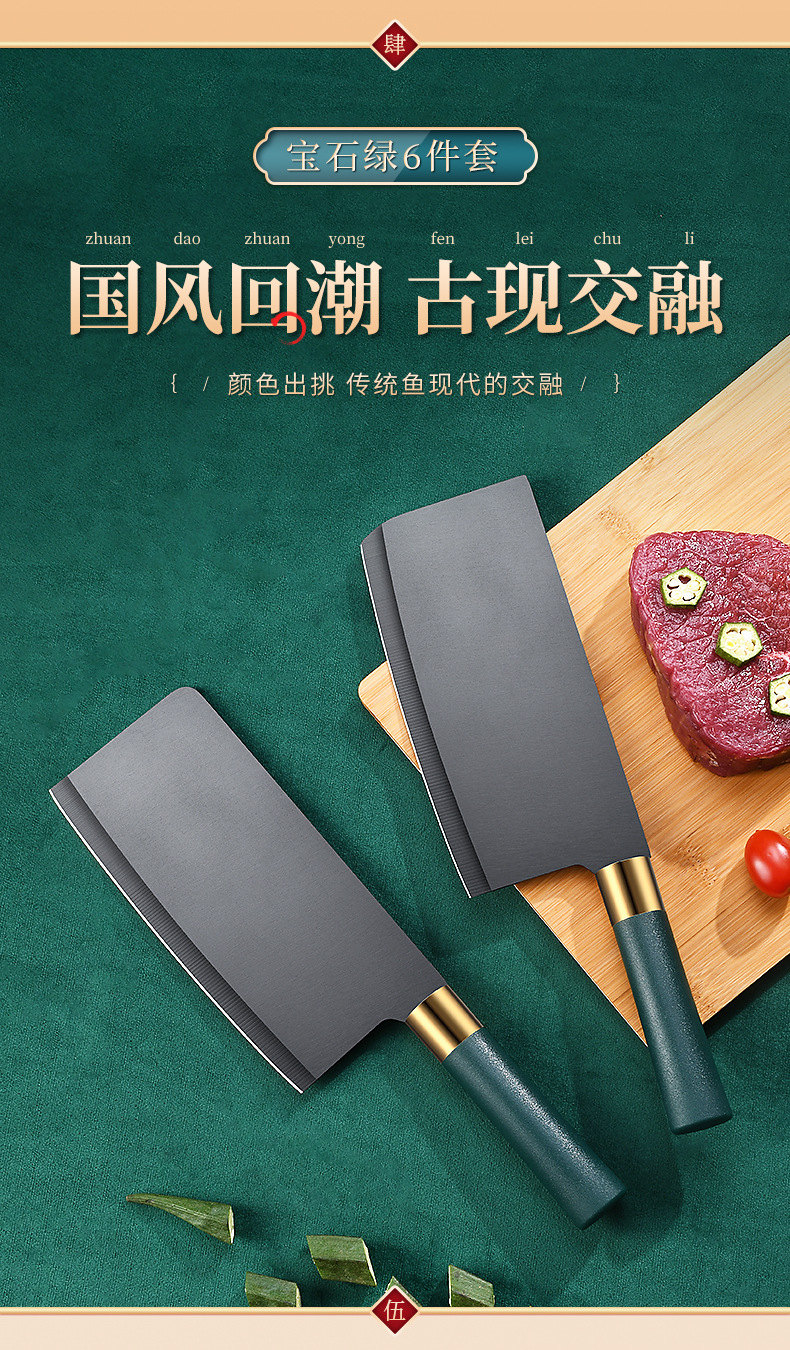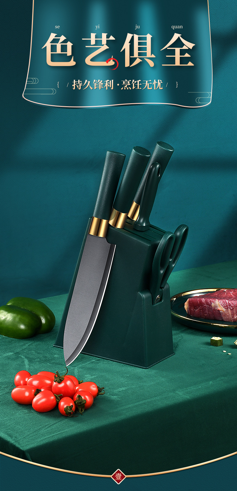 「国潮六件套!礼盒装」刀具套装厨房菜刀组合厨具用品全套不锈钢家用水果刀厨师刀黑锋刀