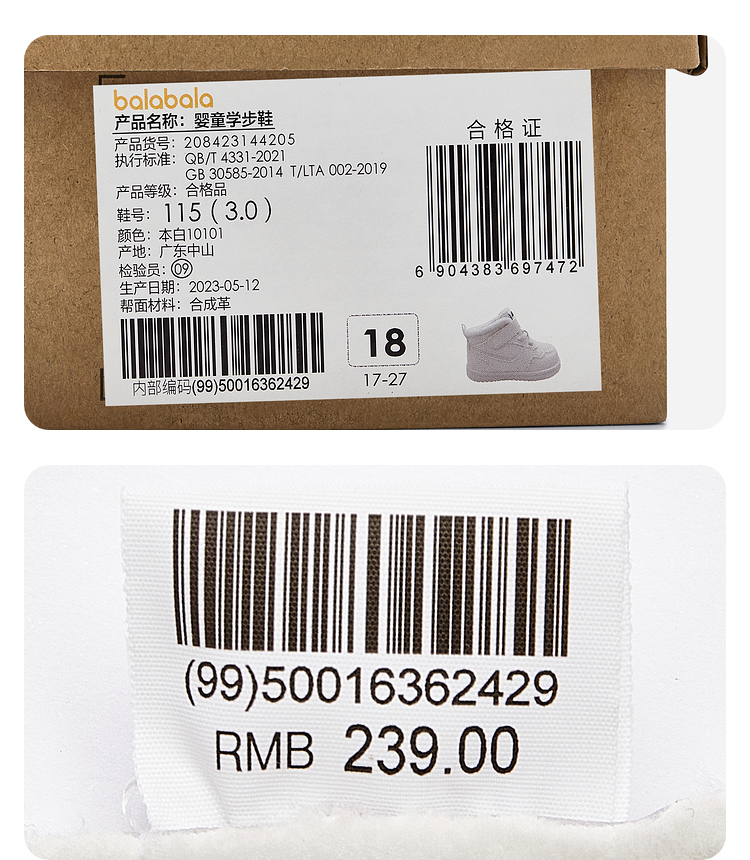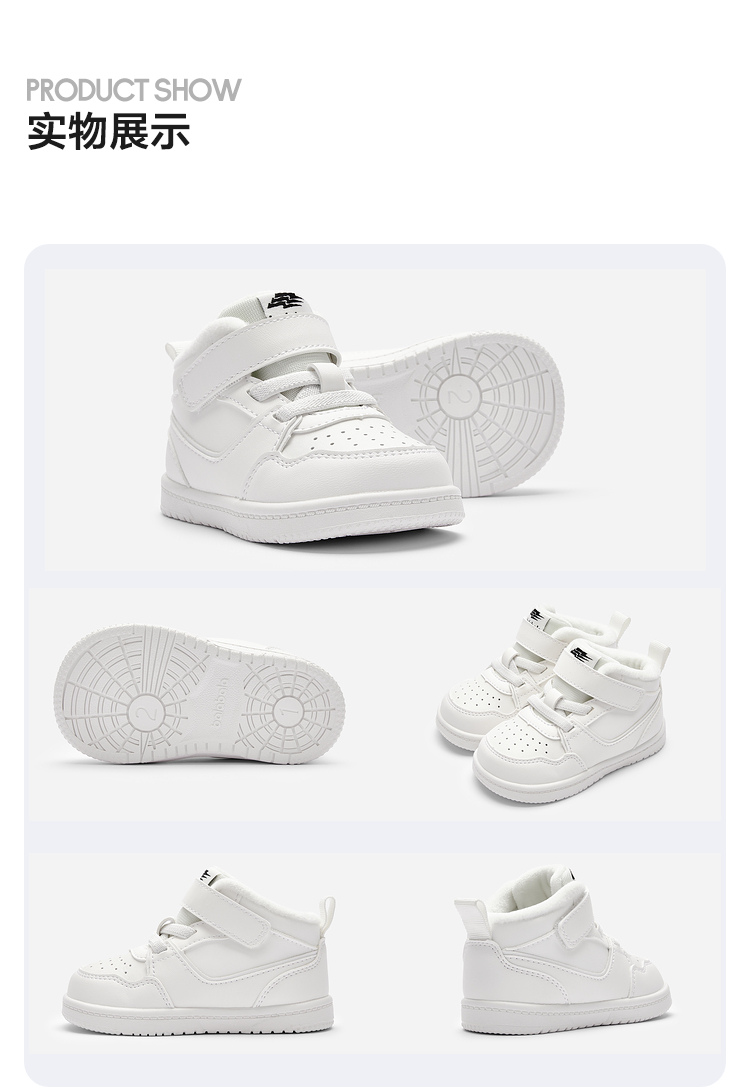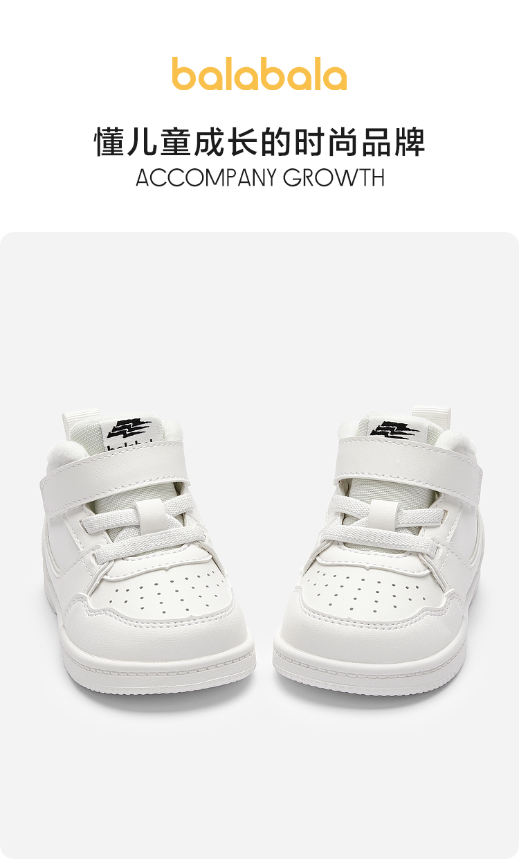 巴拉巴拉宝宝学步鞋婴儿鞋子童鞋秋冬加绒高帮新款防滑小白鞋
