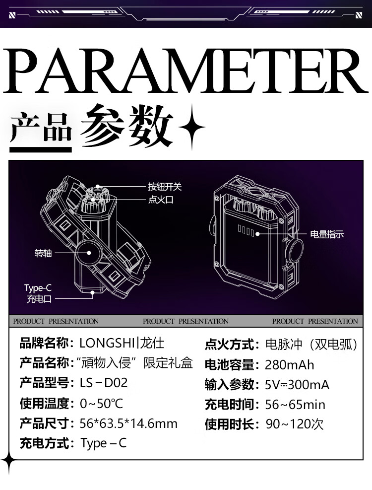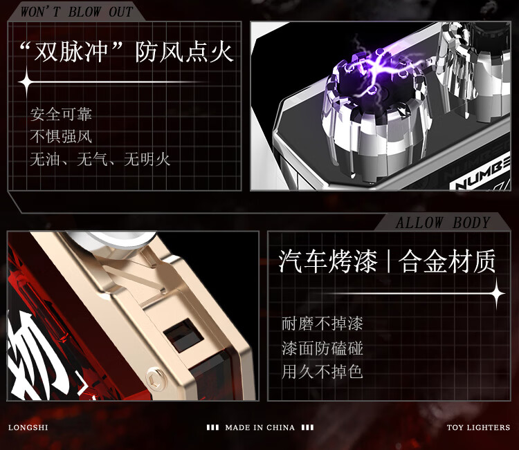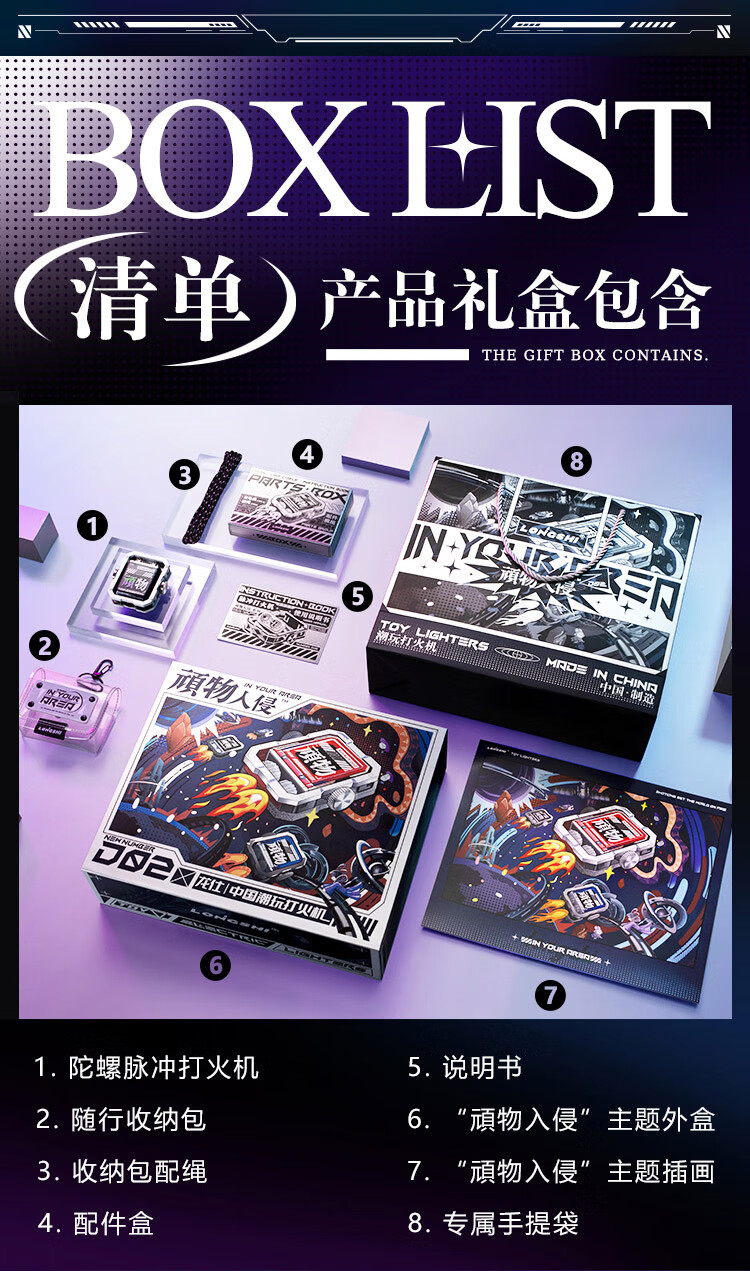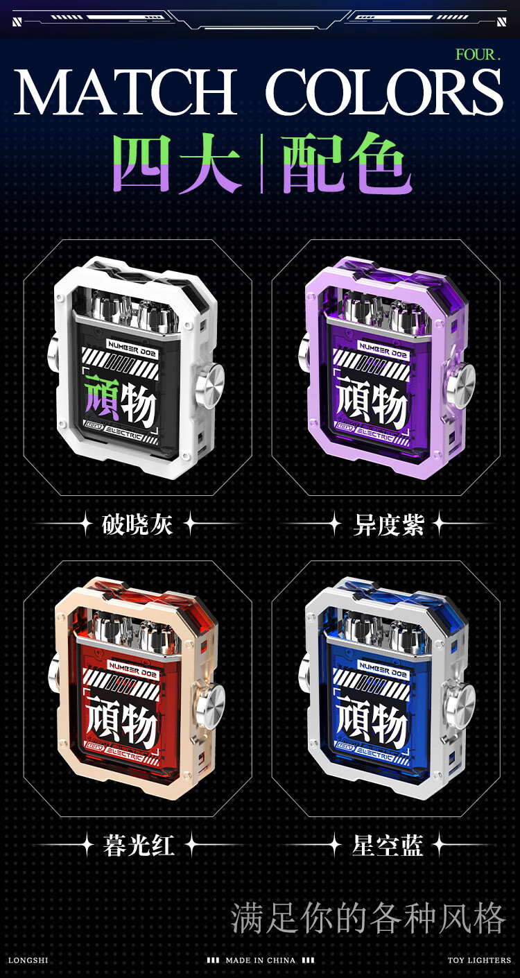 龙仕充电防风打火机金属陀螺解压送男友男士高档520情人节生日礼物【顽物入侵】 破晓灰,异度紫,暮光红,星空蓝