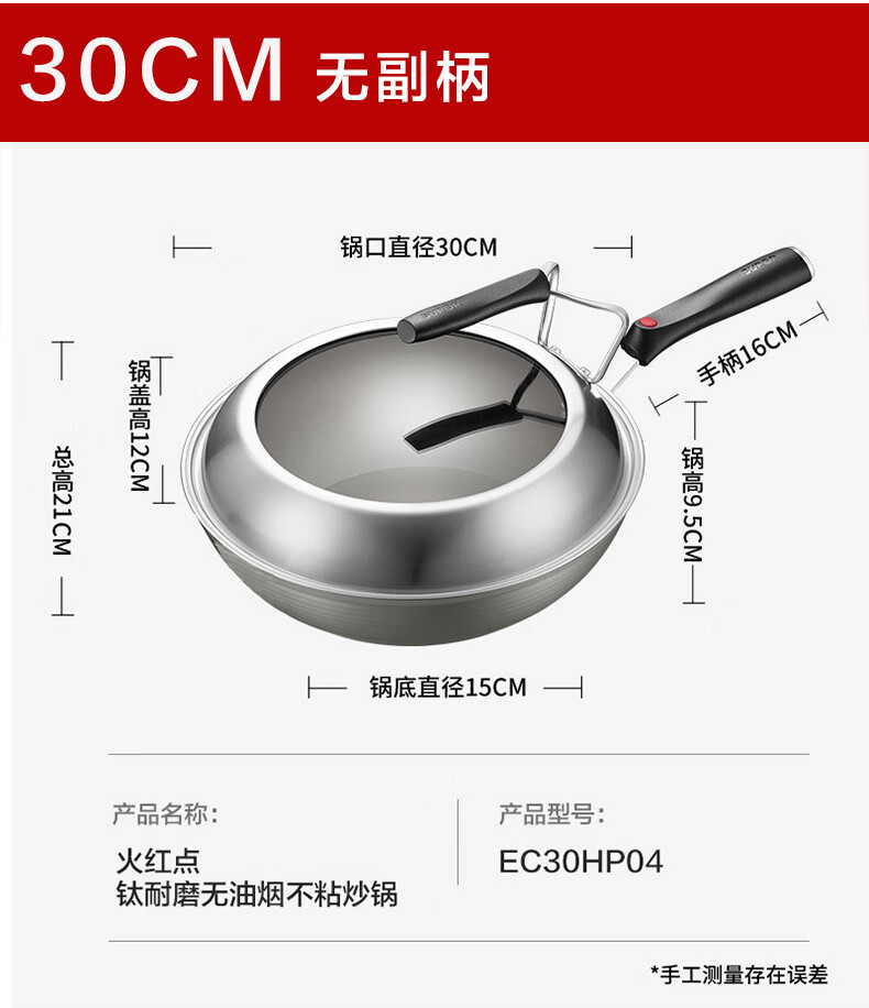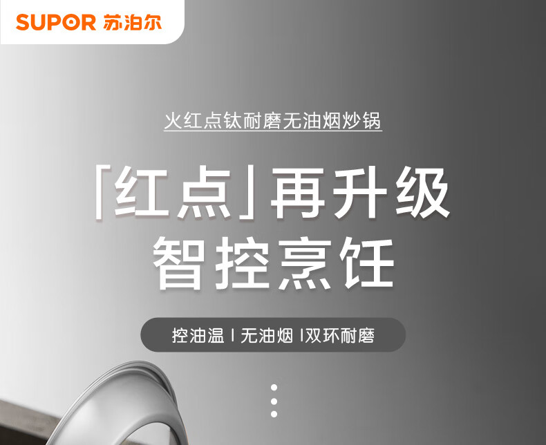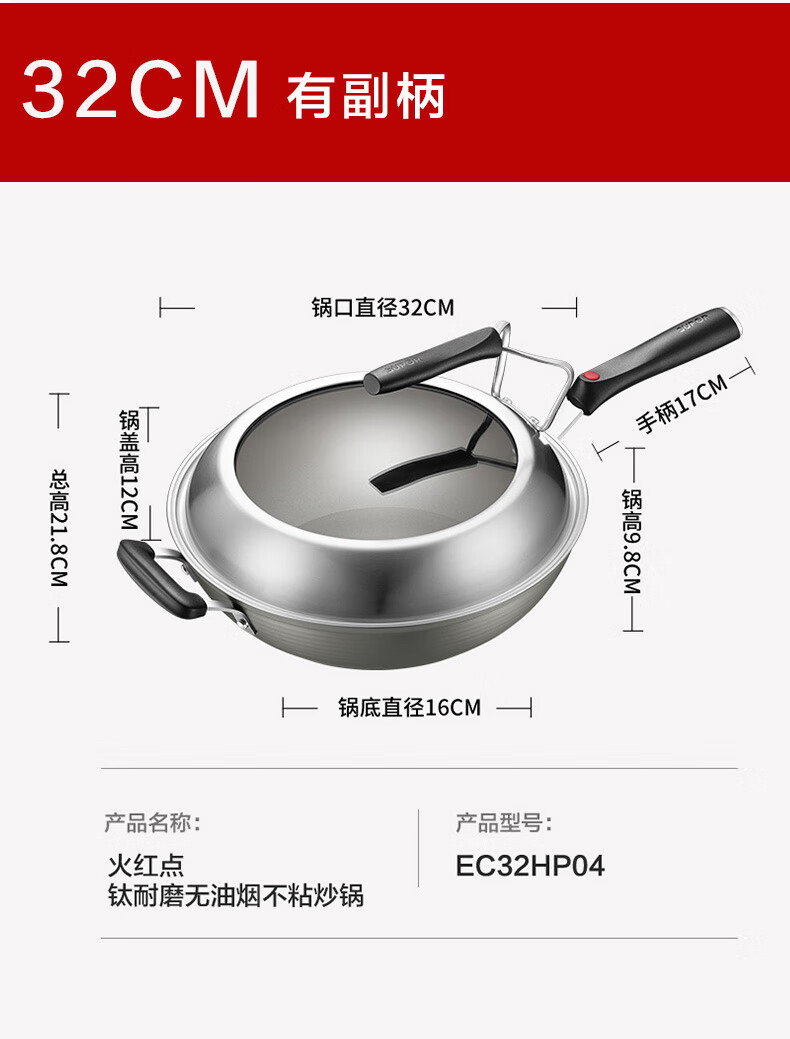苏泊尔(SUPOR) 炒锅不粘锅火红点2代钛金刚少油烟不粘平底炒菜锅家用烹饪少油烟 32cm EC32HP04