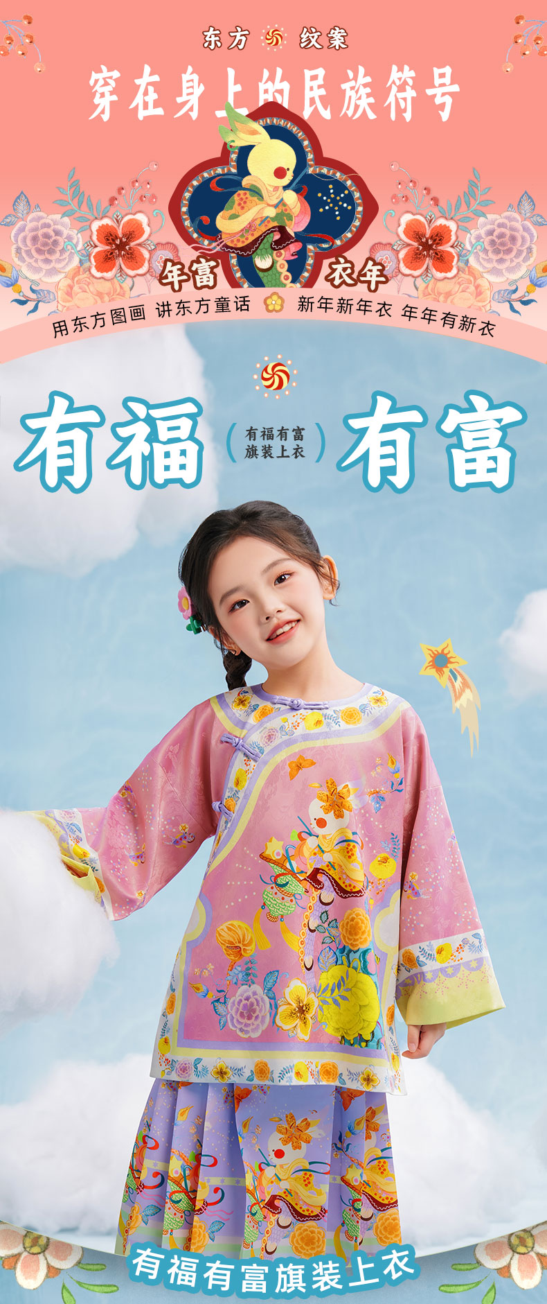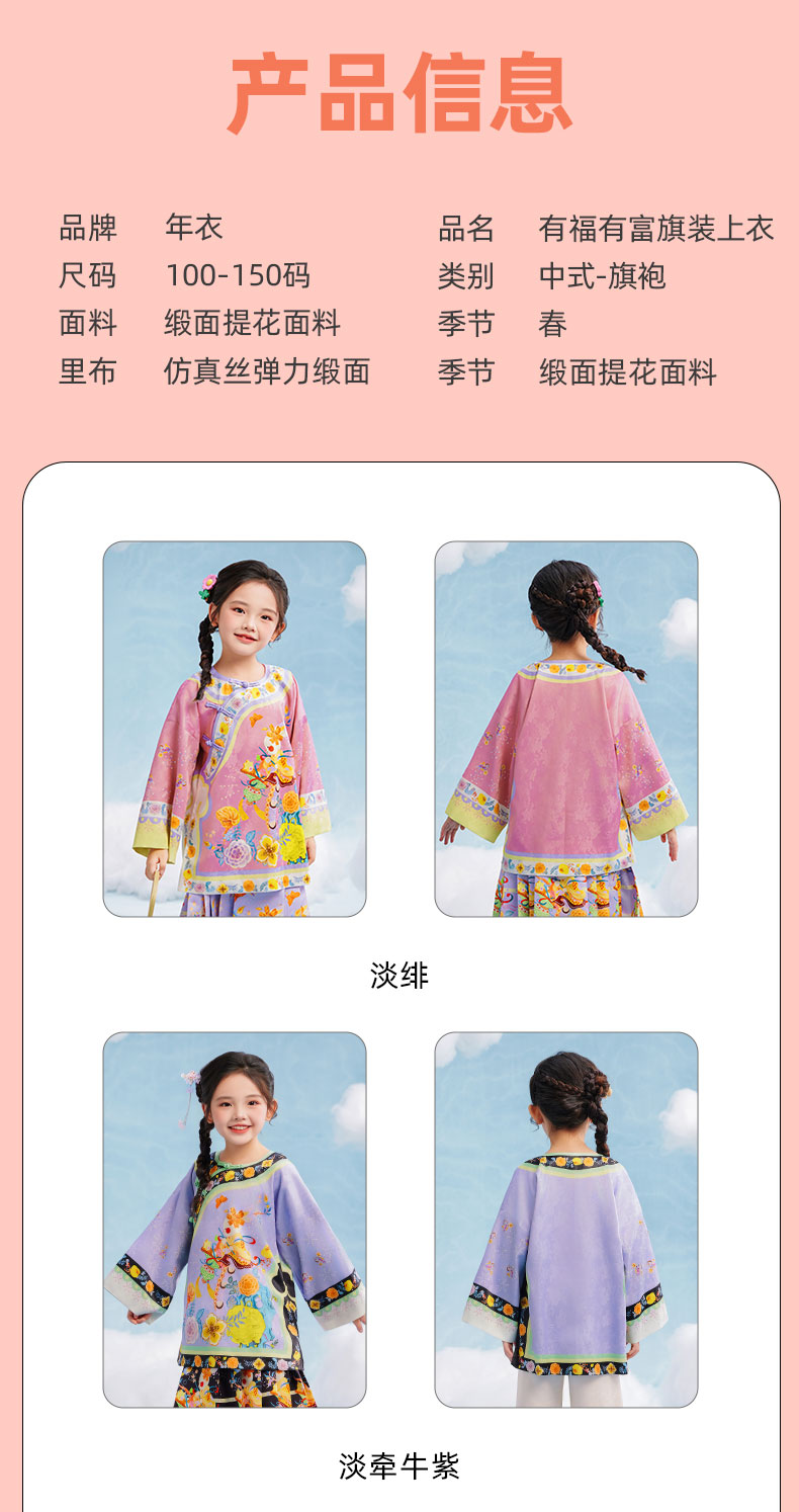 年衣童装女童新中式唐装外套秋春2025新款汉服儿童古装国风格格服有福有富旗装上衣