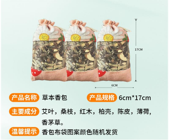 【成分】:艾草、香樟 、丁香 、藿香、 白芷 、金银花、 薰衣草、 薄荷叶 、侧柏叶等
