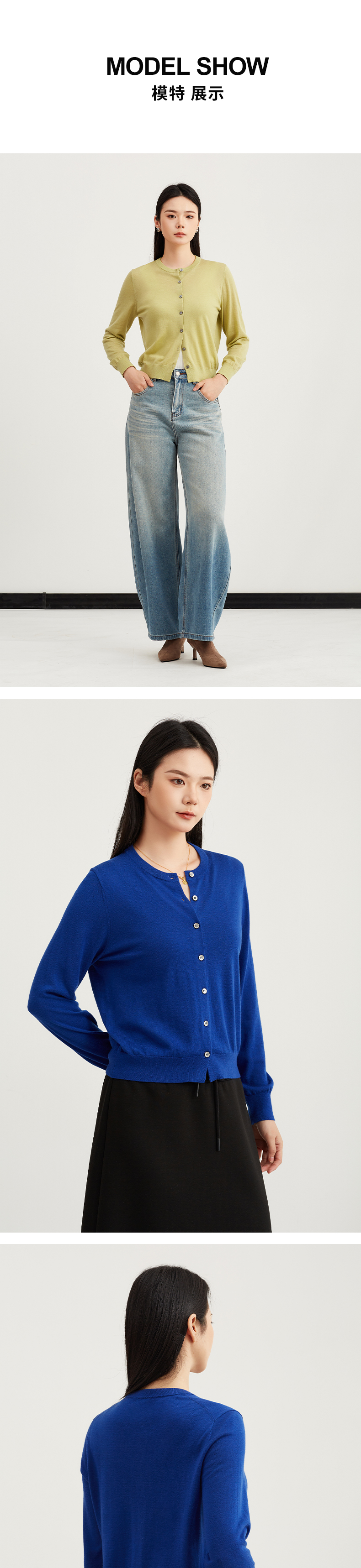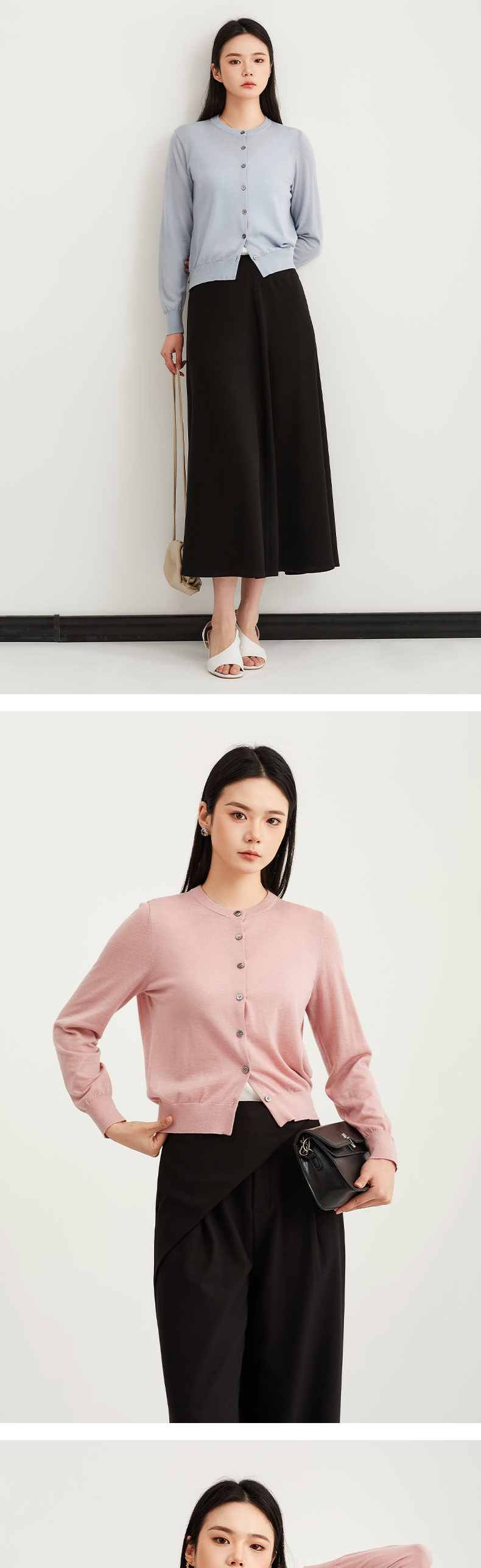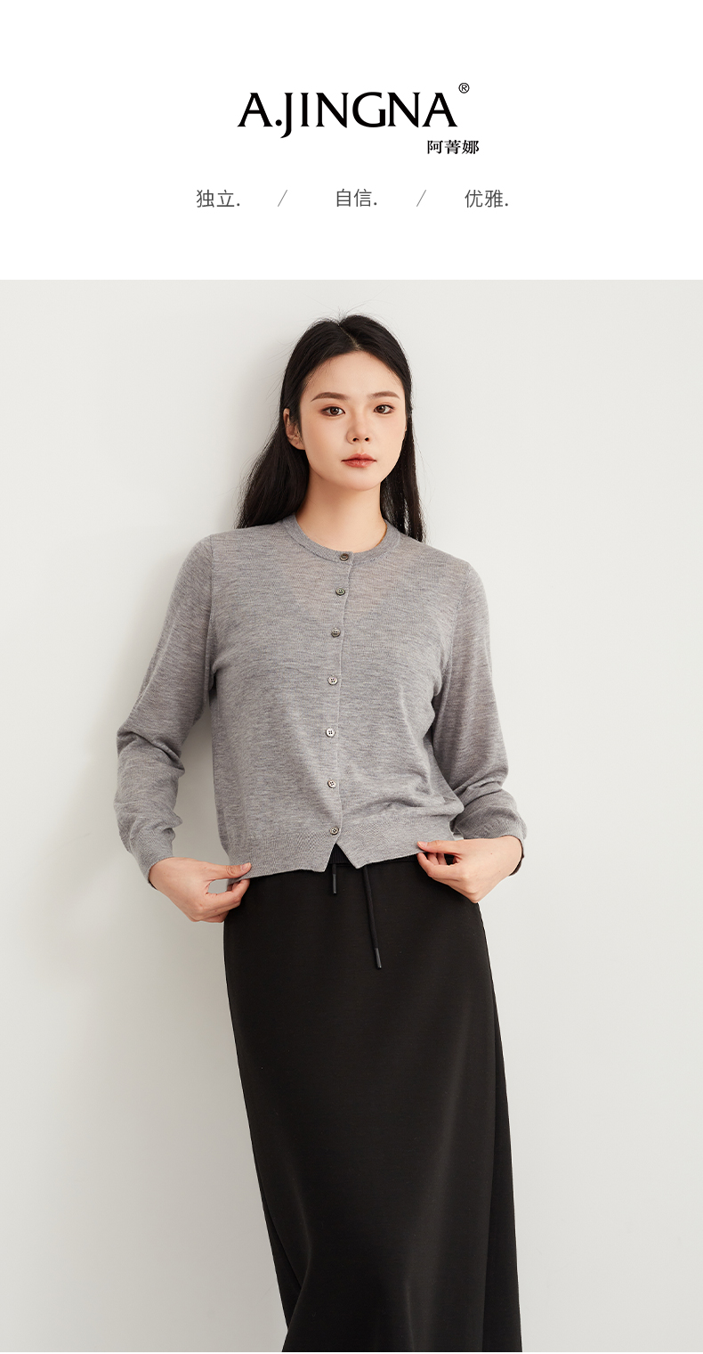 【圆领罗纹】阿菁娜春季新款温柔显白开衫低饱和度色系不挑肤小圆领罗纹包边自带柔光气质滤镜F31C318006