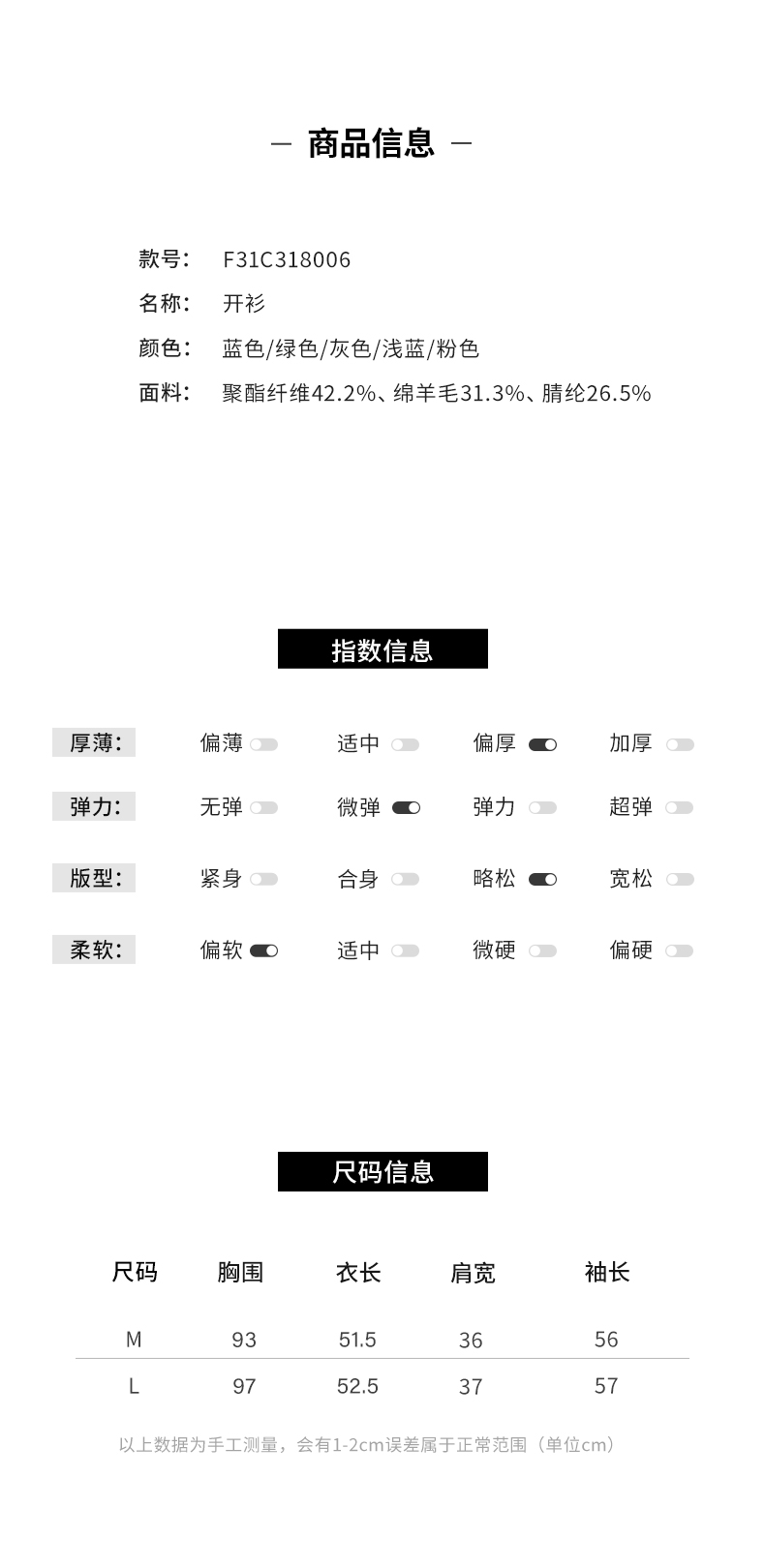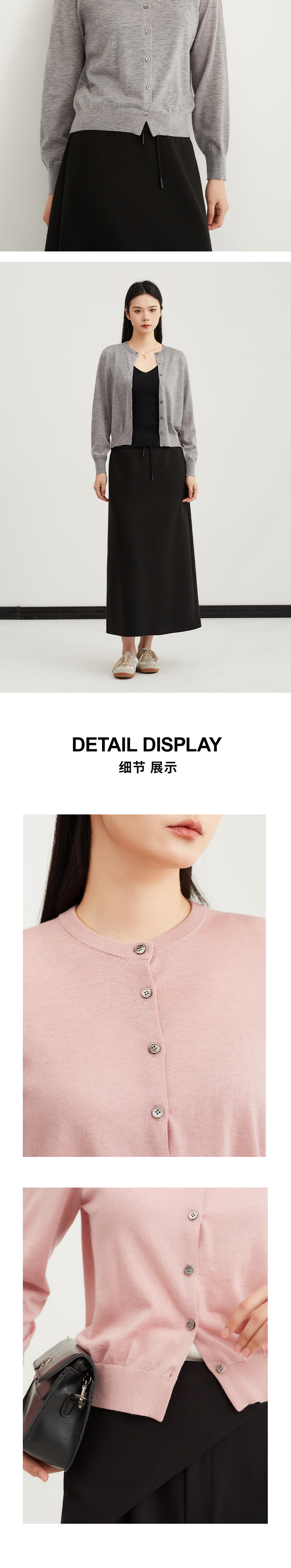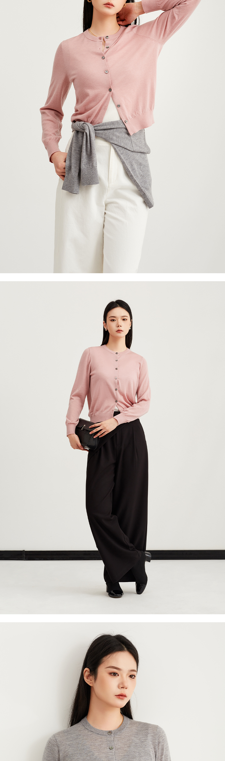 【圆领罗纹】阿菁娜春季新款温柔显白开衫低饱和度色系不挑肤小圆领罗纹包边自带柔光气质滤镜F31C318006