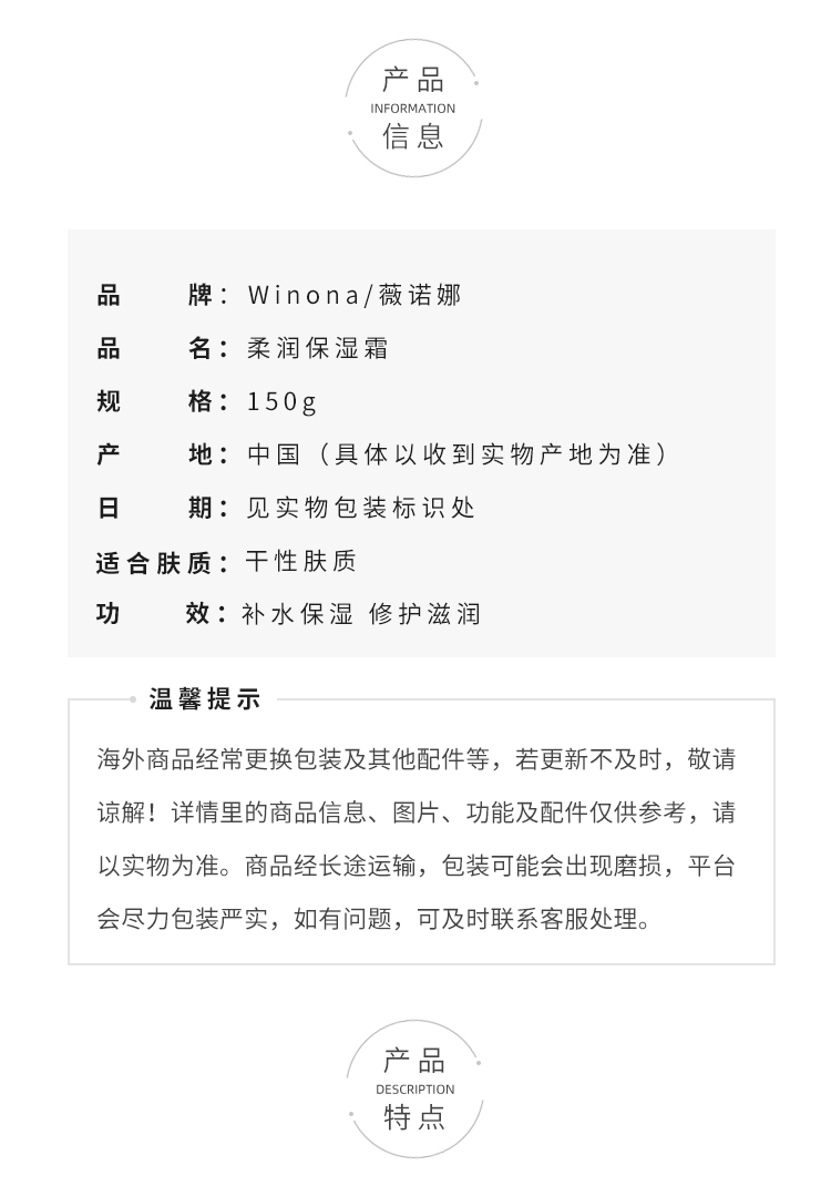 薇诺娜柔润保湿霜面霜乳液补水保湿滋润大干皮全身可用护肤品150g