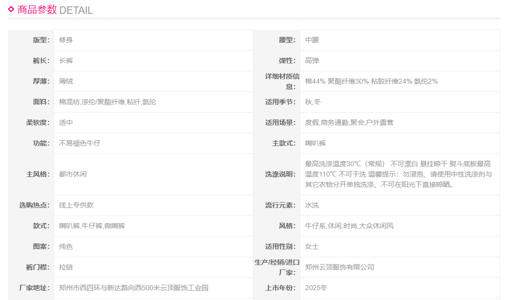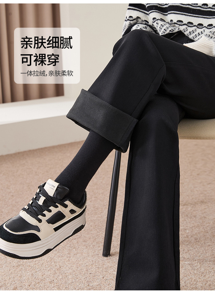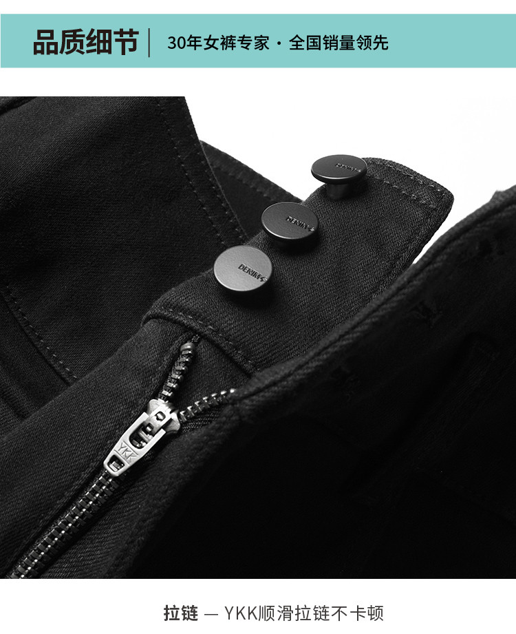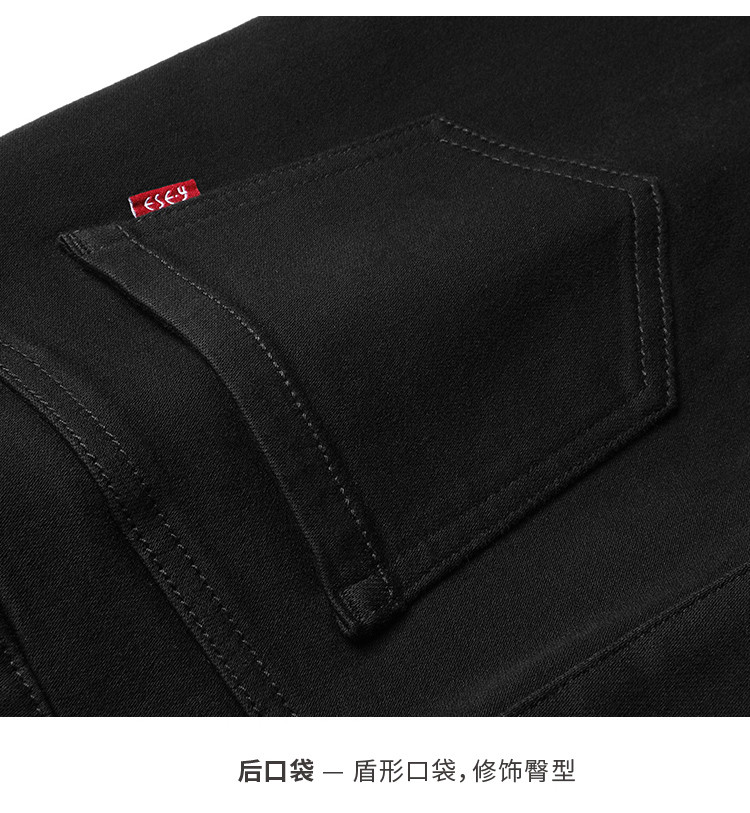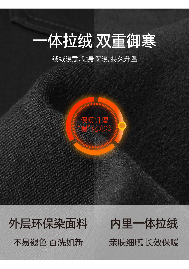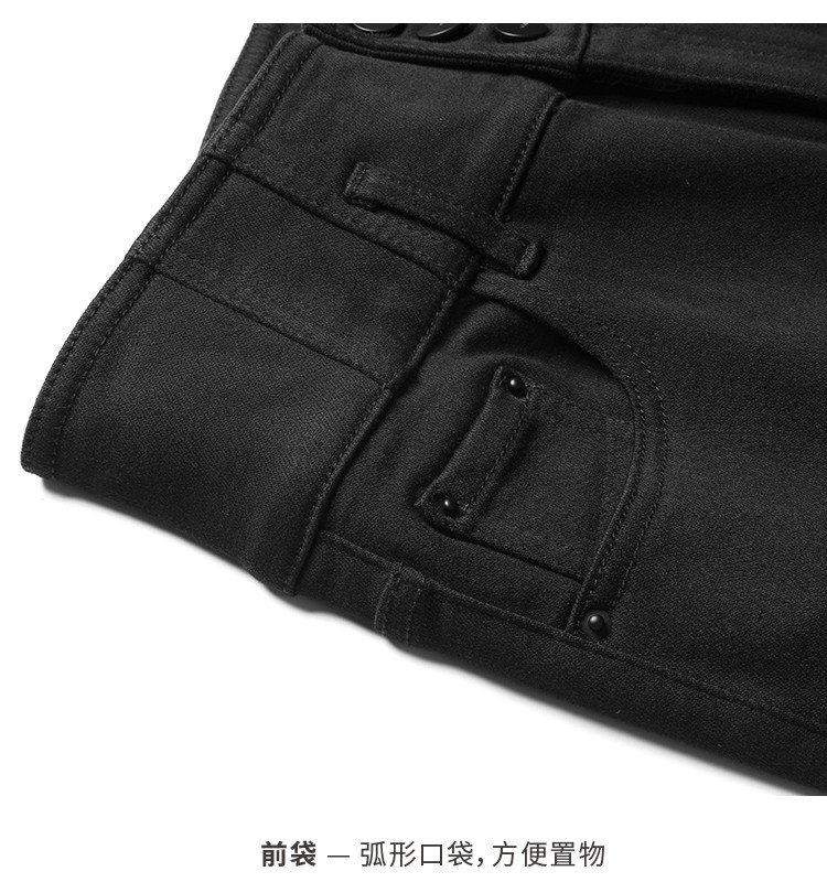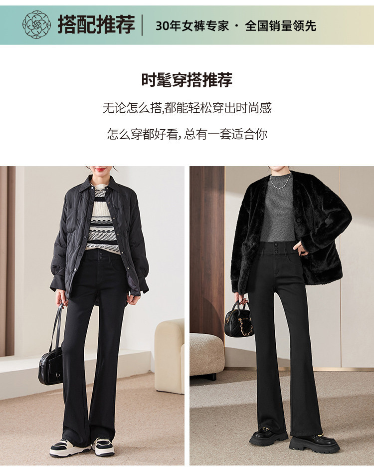 【高腰-加绒-微喇牛仔】逸阳冬不易褪色薄绒黑色高腰三粒扣牛仔裤4427B1