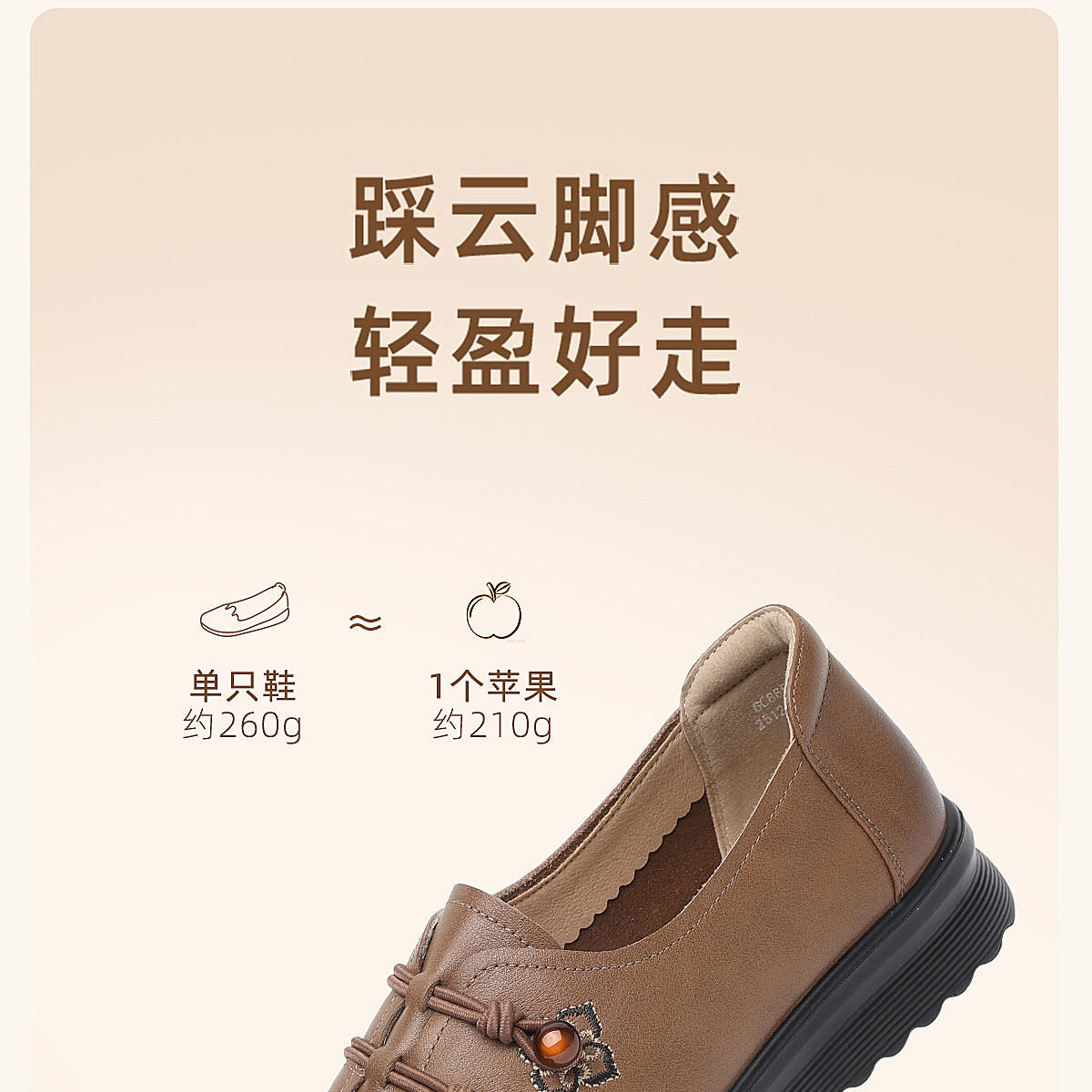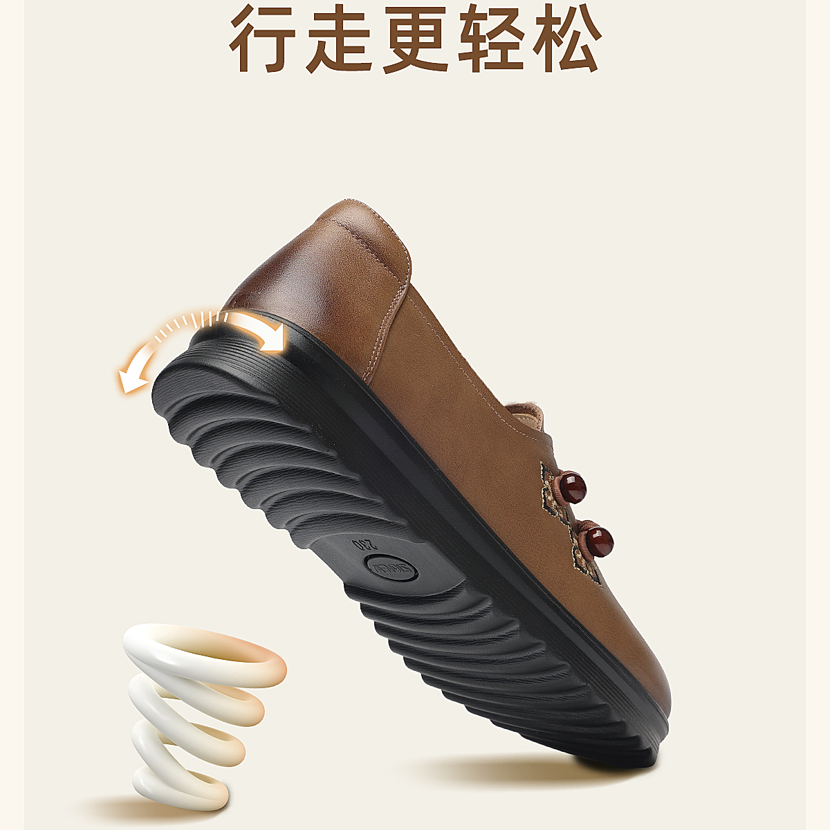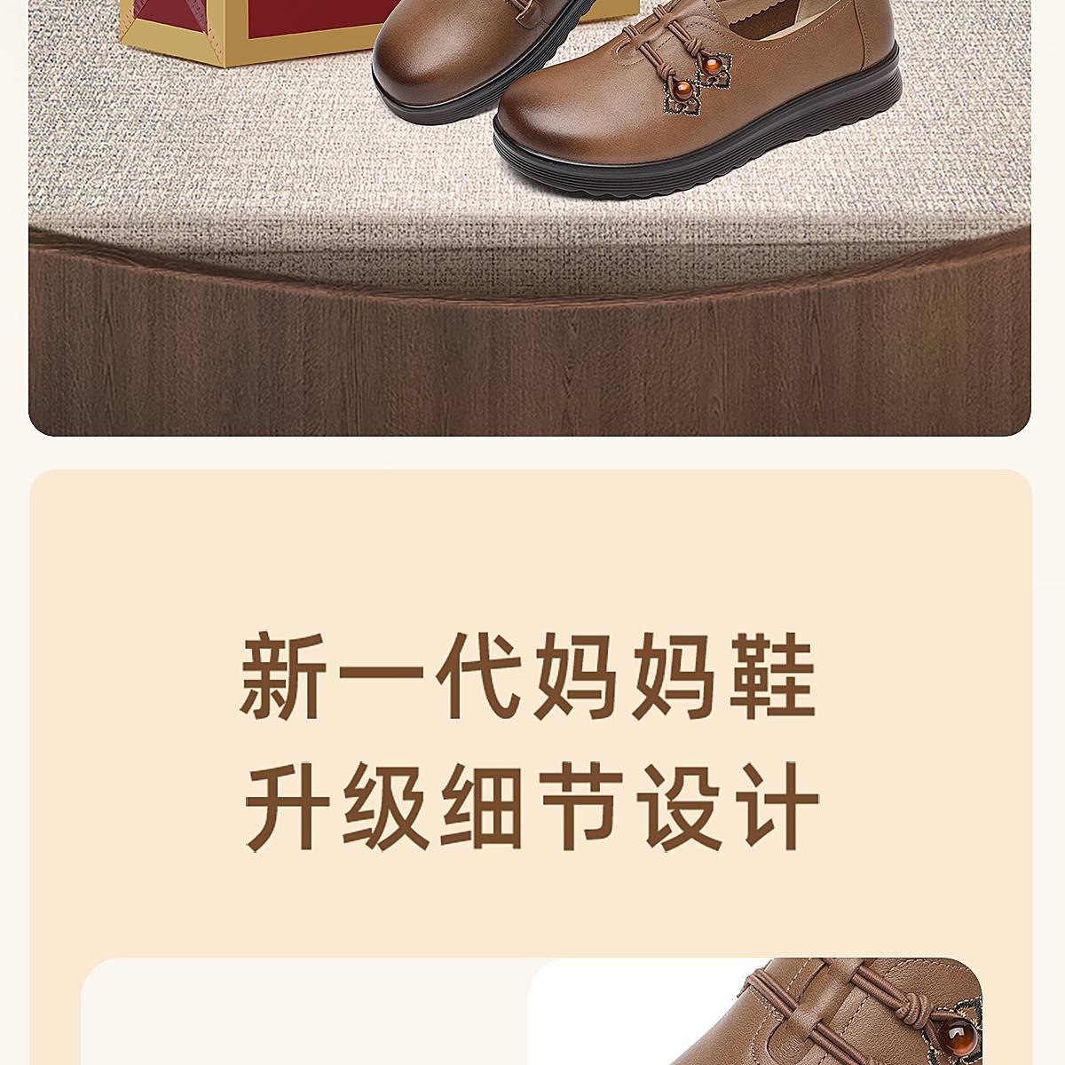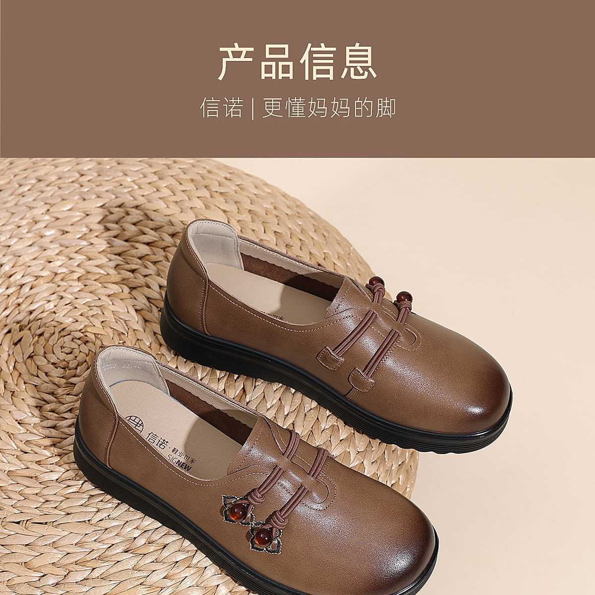 中老年妈妈鞋真皮平底休闲单鞋女舒适一脚蹬奶奶皮鞋2026春季新款6C8659-1