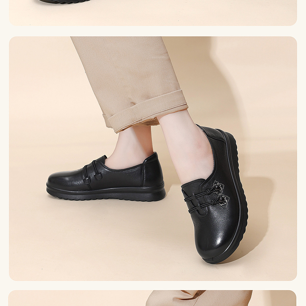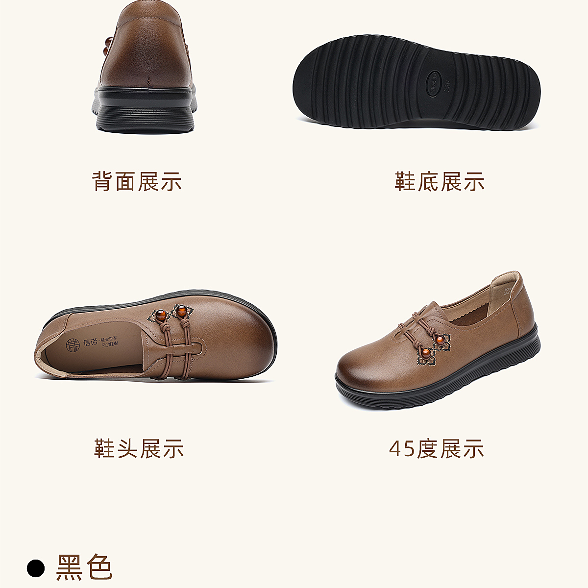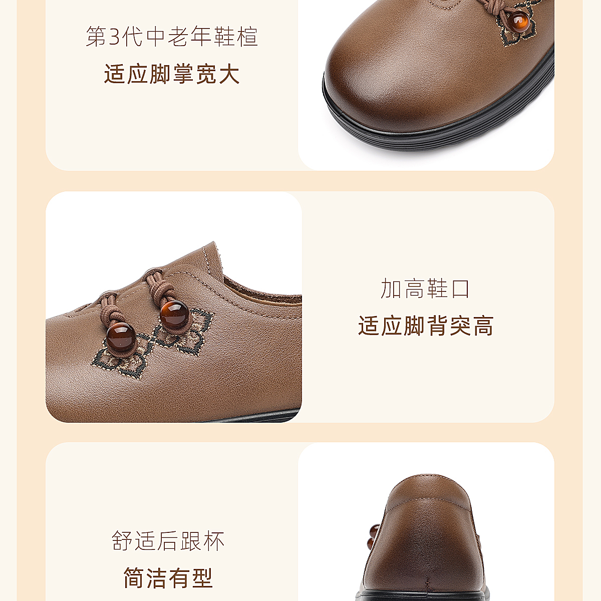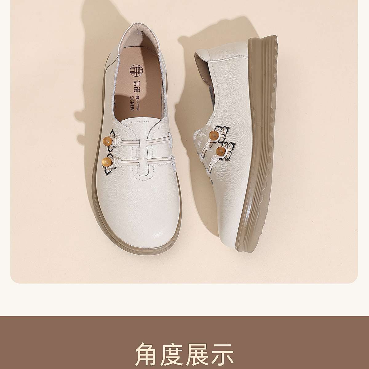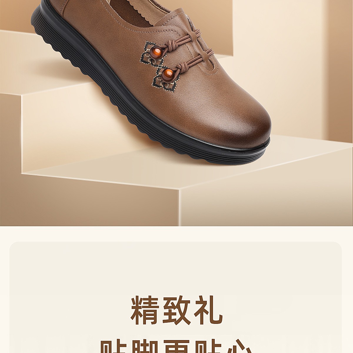 中老年妈妈鞋真皮平底休闲单鞋女舒适一脚蹬奶奶皮鞋2026春季新款6C8659-1