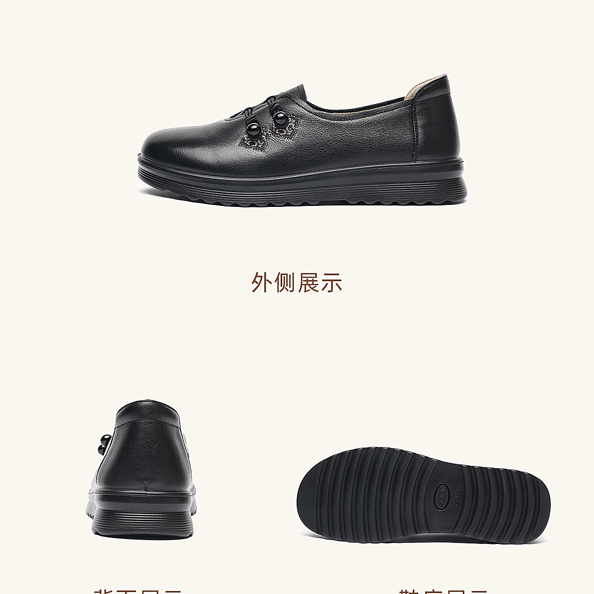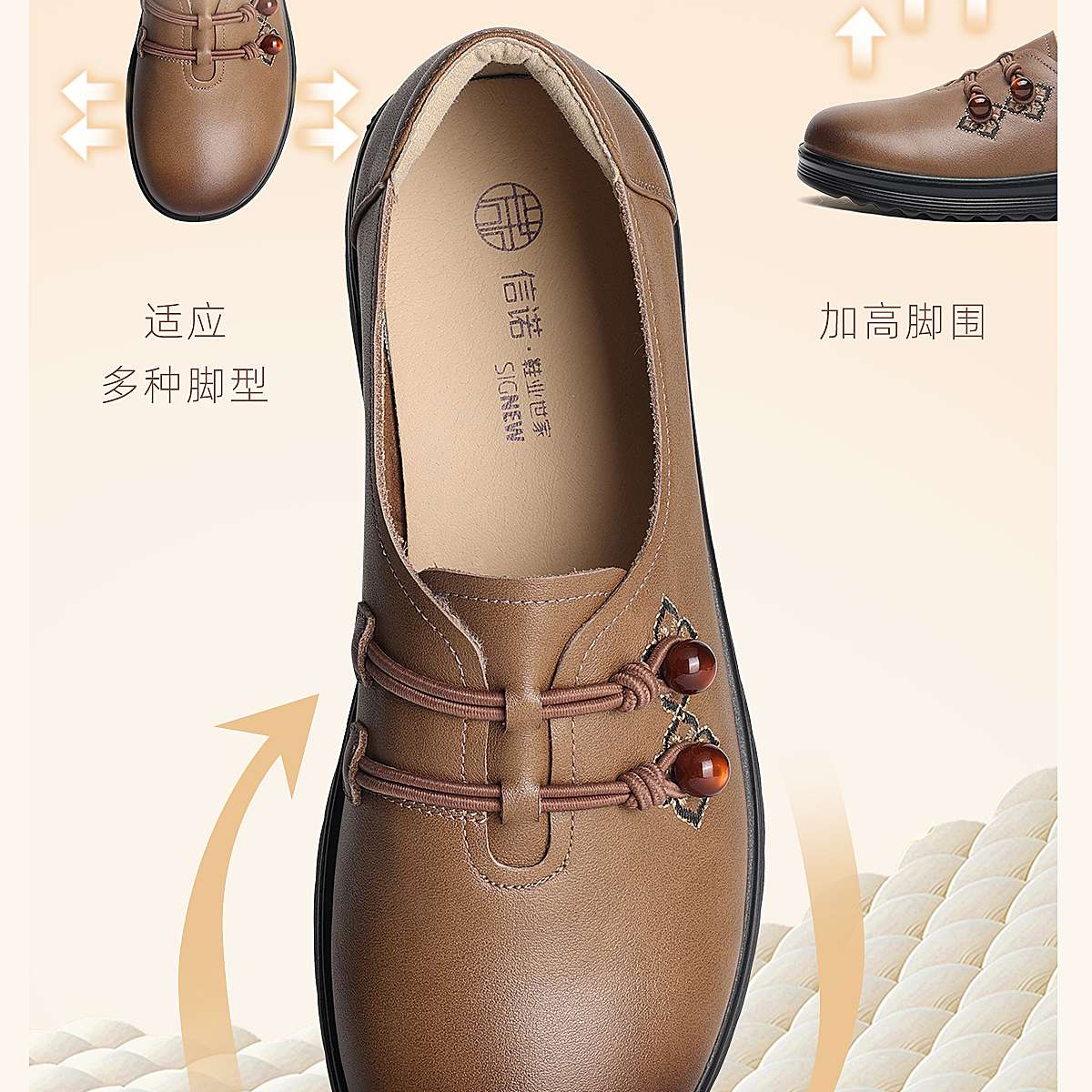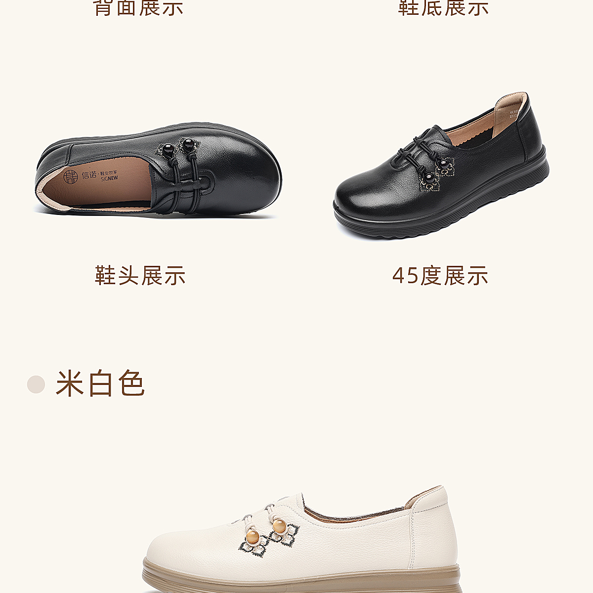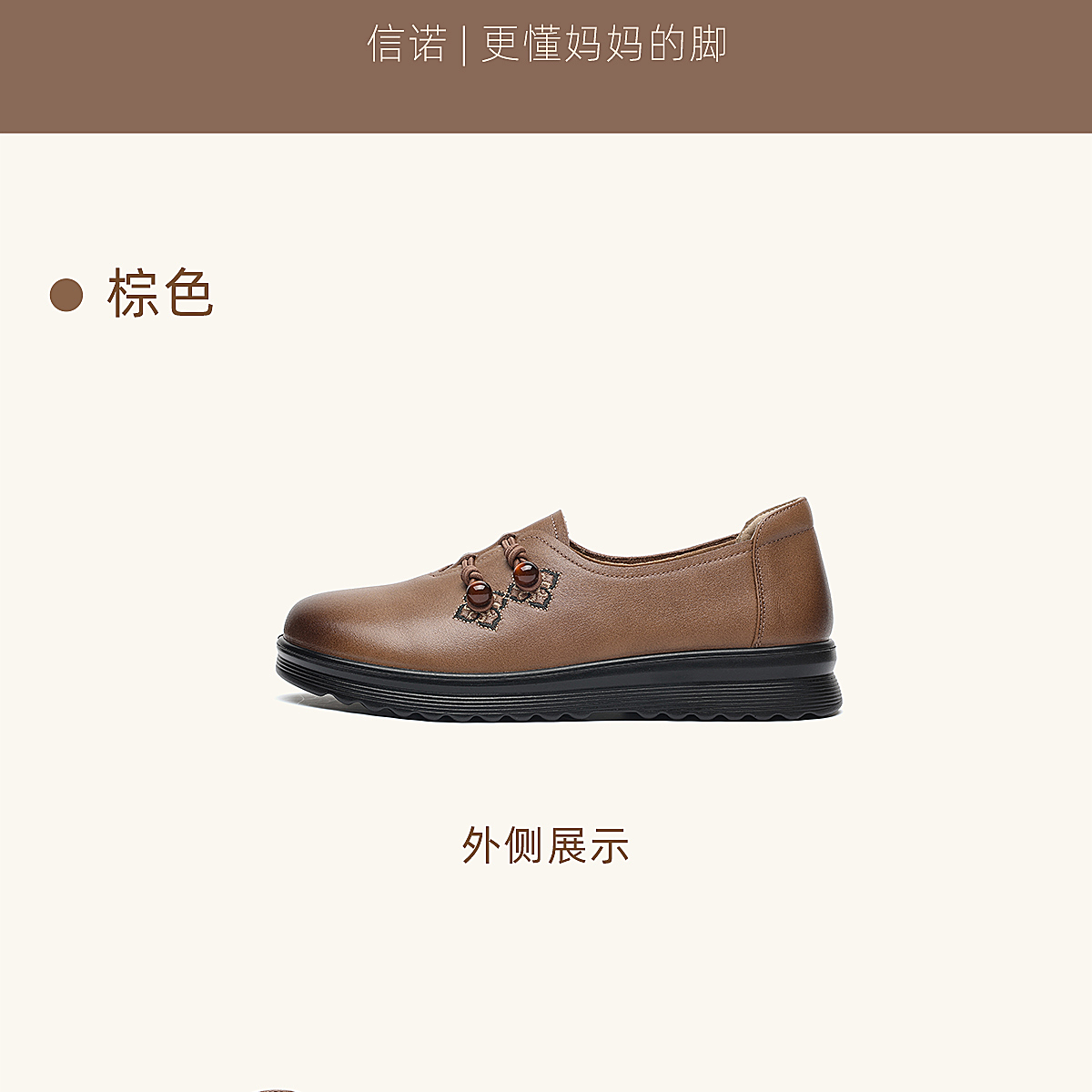 中老年妈妈鞋真皮平底休闲单鞋女舒适一脚蹬奶奶皮鞋2026春季新款6C8659-1