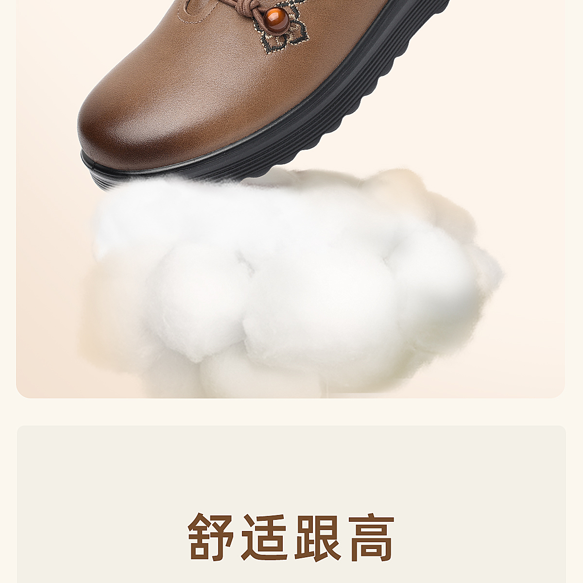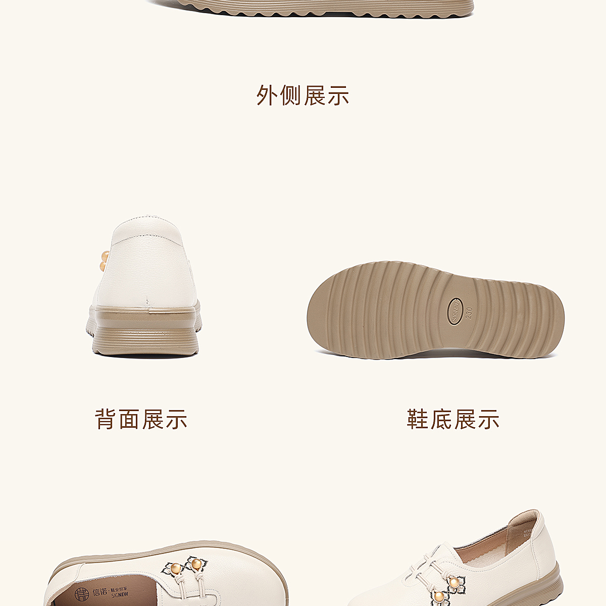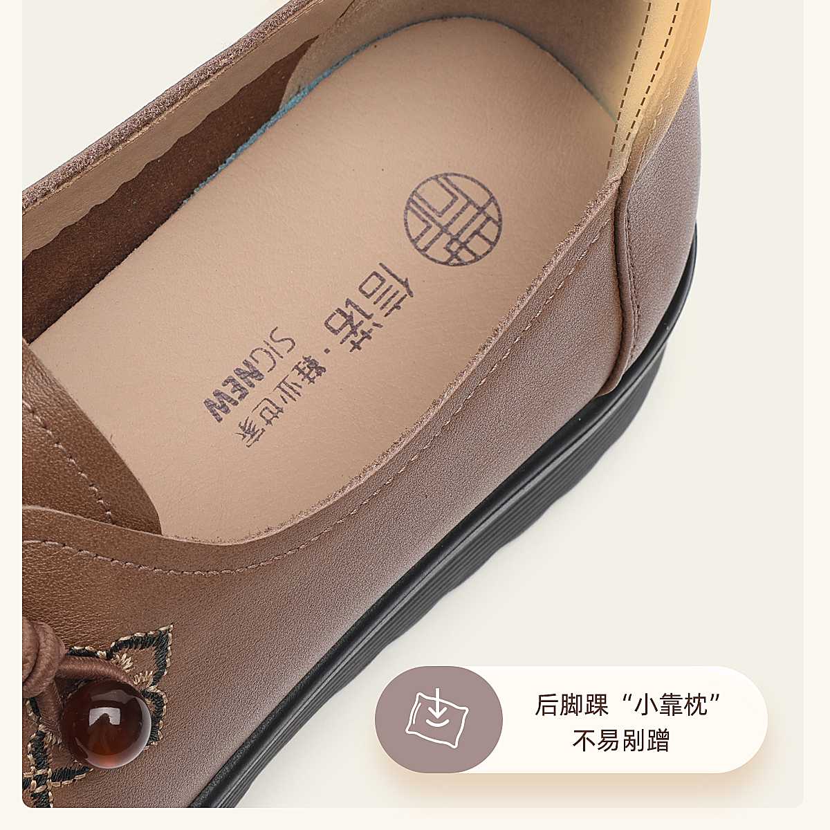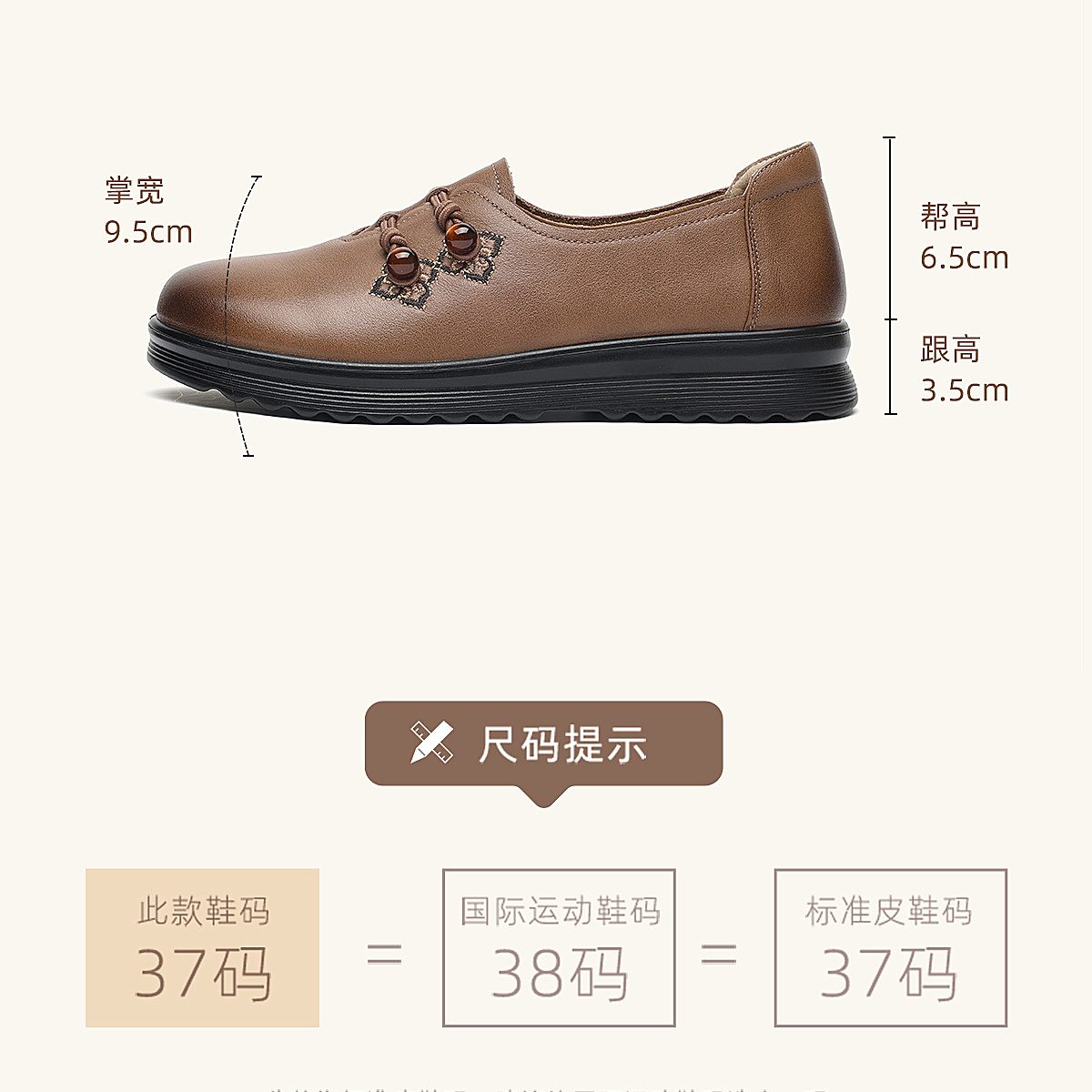 中老年妈妈鞋真皮平底休闲单鞋女舒适一脚蹬奶奶皮鞋2026春季新款6C8659-1