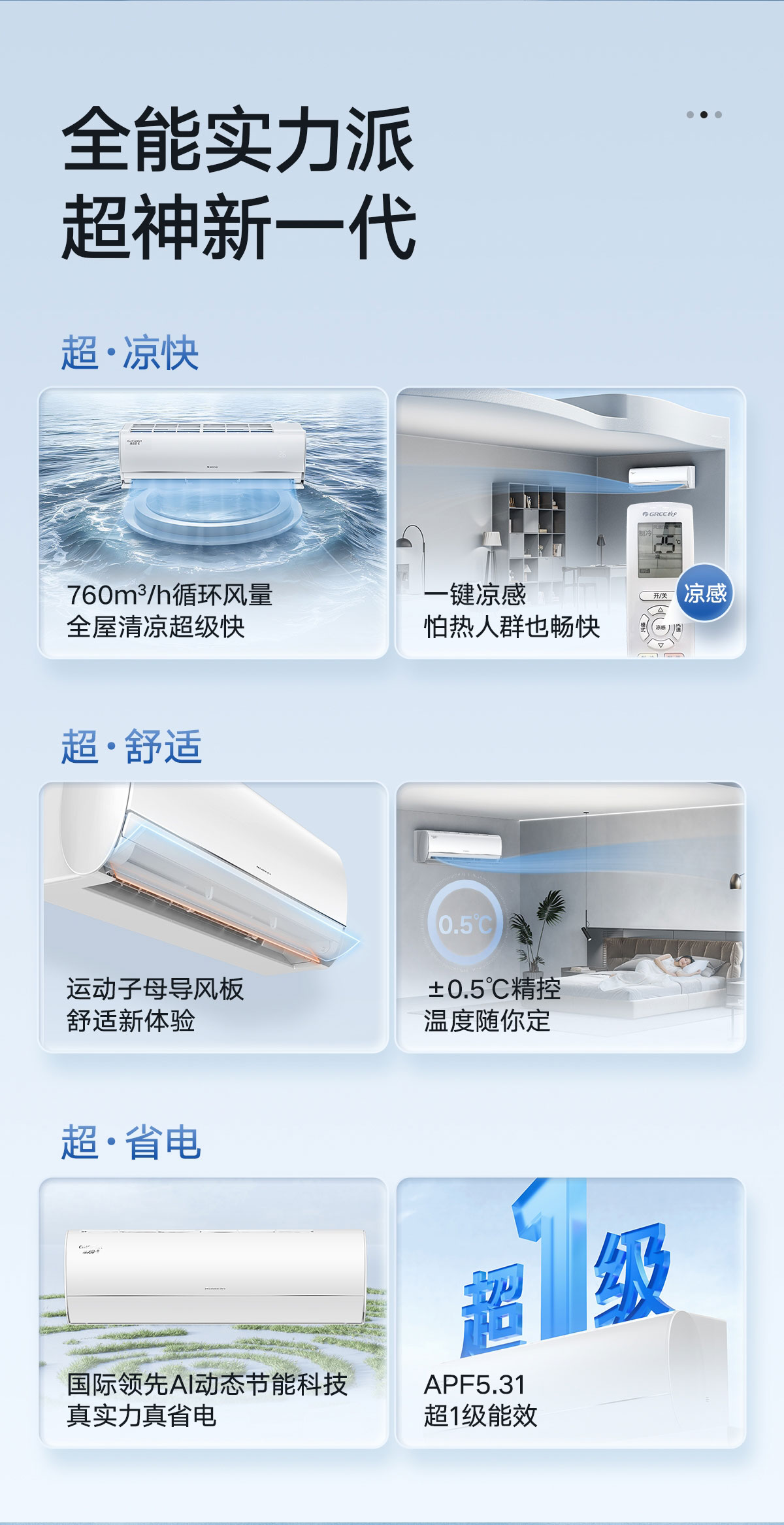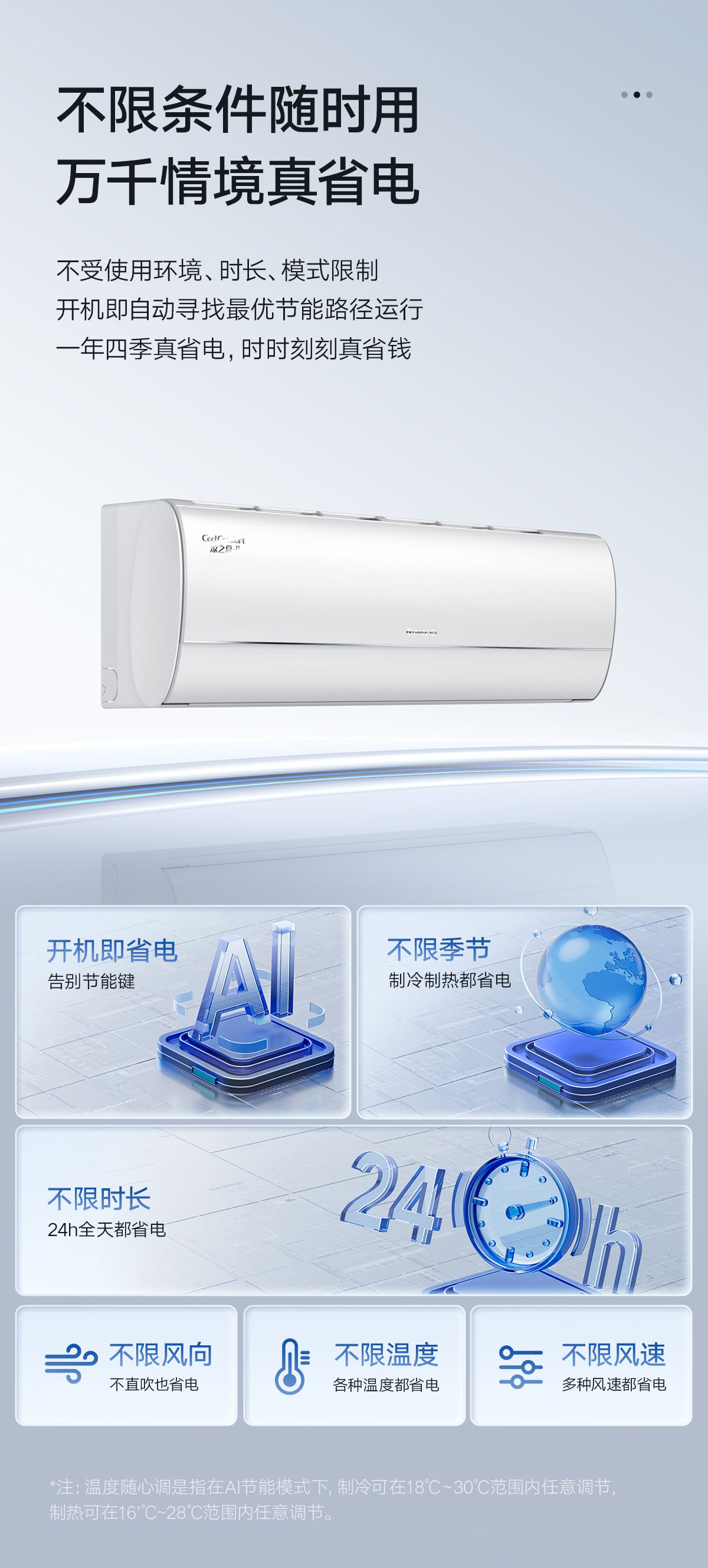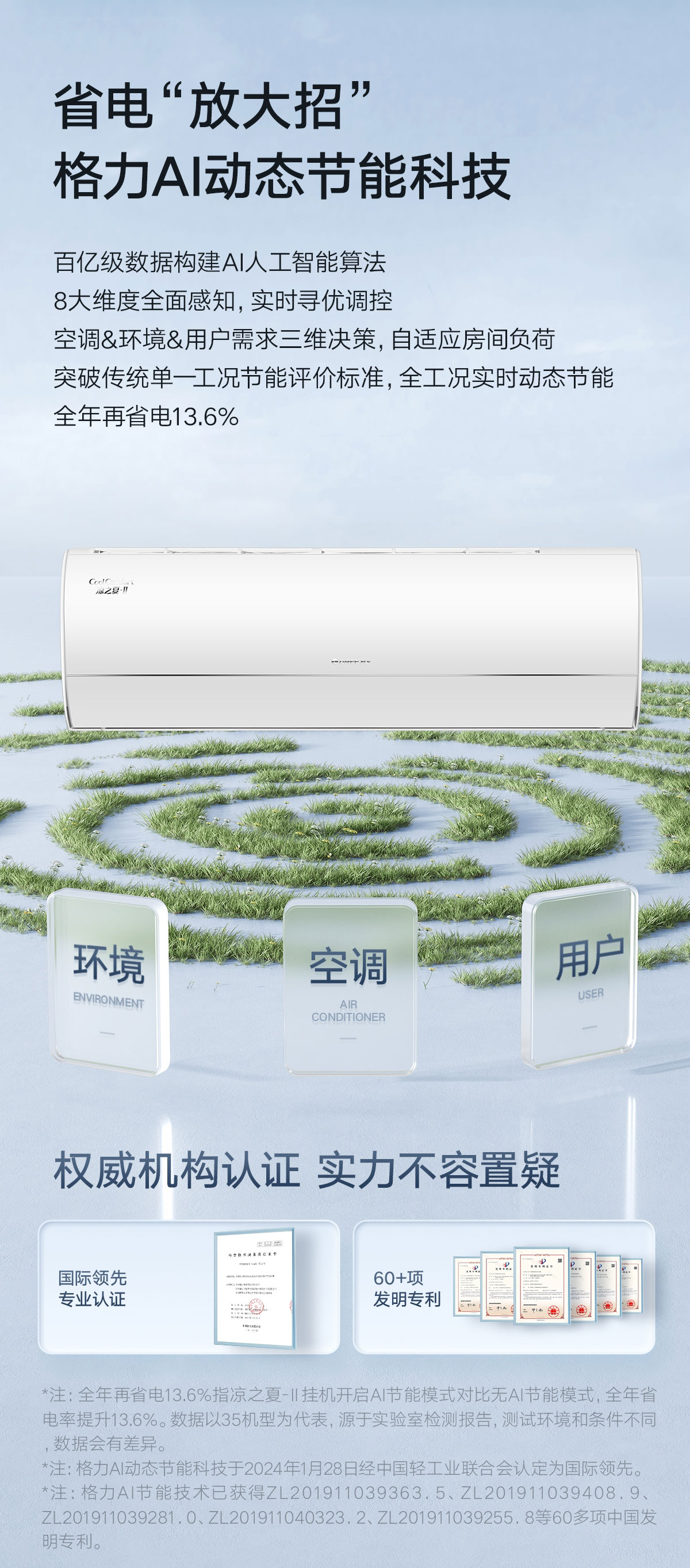 格力·凉之夏-II 变频冷暖1.5匹新一级能效挂机空调 KFR-35GW/(35598)FNhAa-B1(WIFI)温馨白