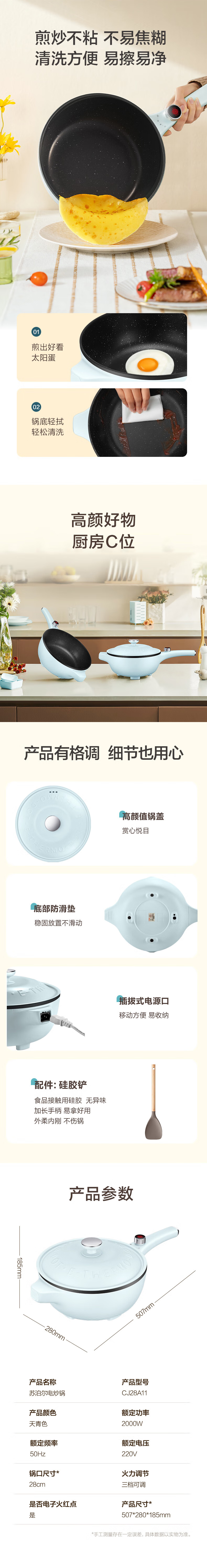 苏泊尔(SUPOR)电煮锅(510694)家用小型宿舍小电锅电蒸锅泡面电火锅多功能不粘涂层电炒锅 4L 【电炒锅】CJ28A11