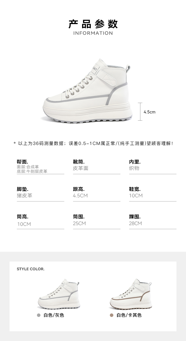 星期六保暖加绒增高厚底休闲高帮鞋SS34116283