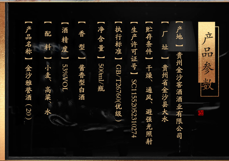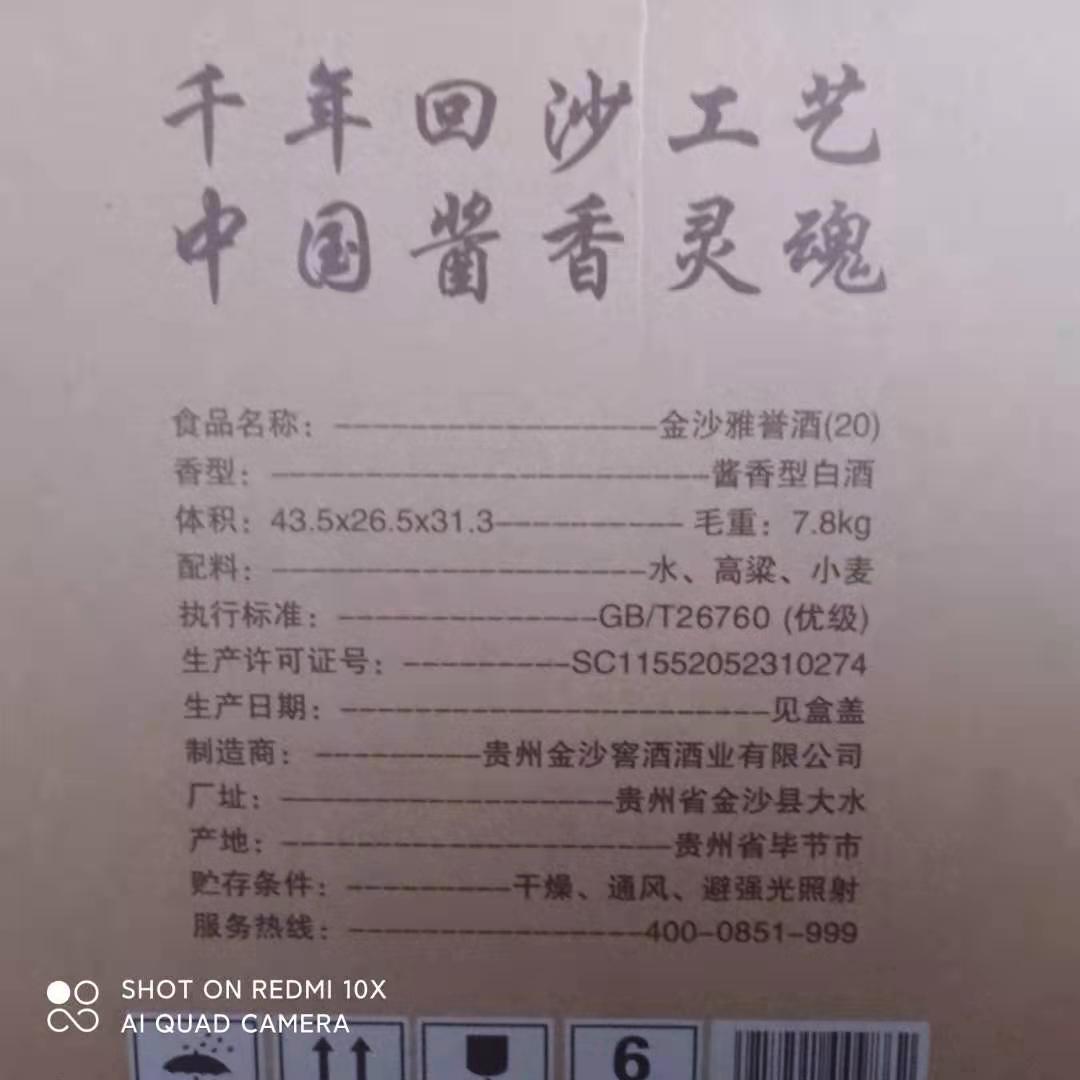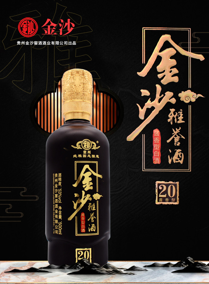 贵州金沙雅誉20酒酱香型 53度 500ml*6瓶 手工礼盒装粮食白酒