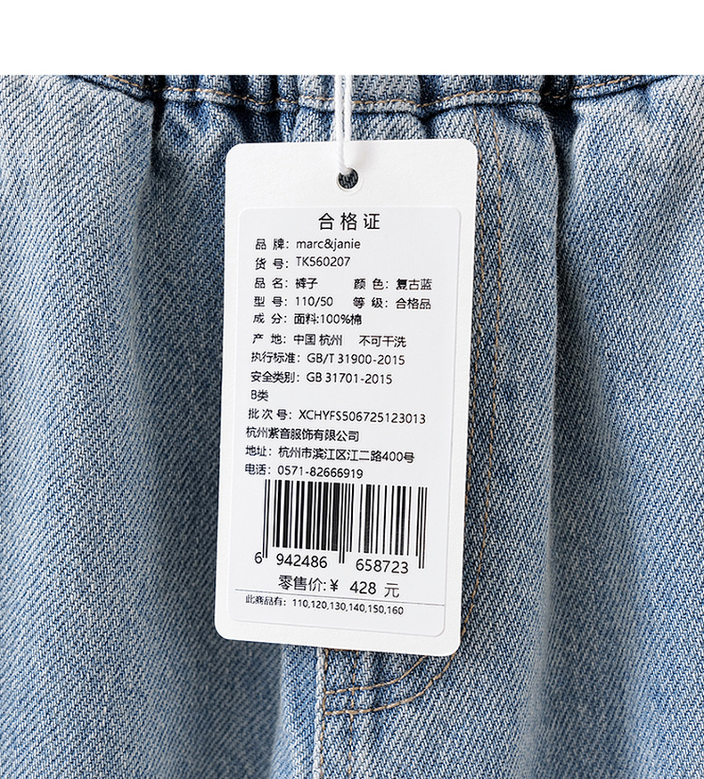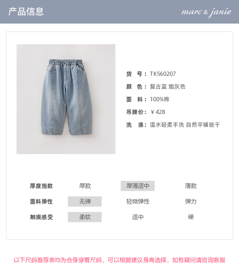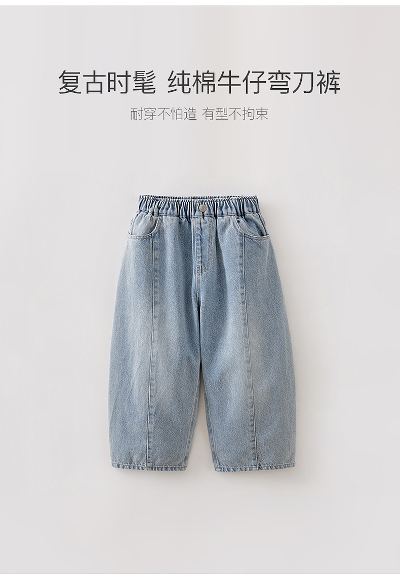 马克珍妮复古时髦女童纯棉牛仔弯刀裤2026年春装新款560207