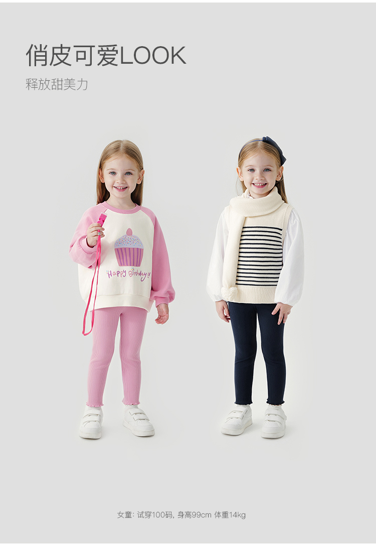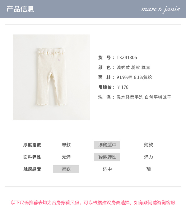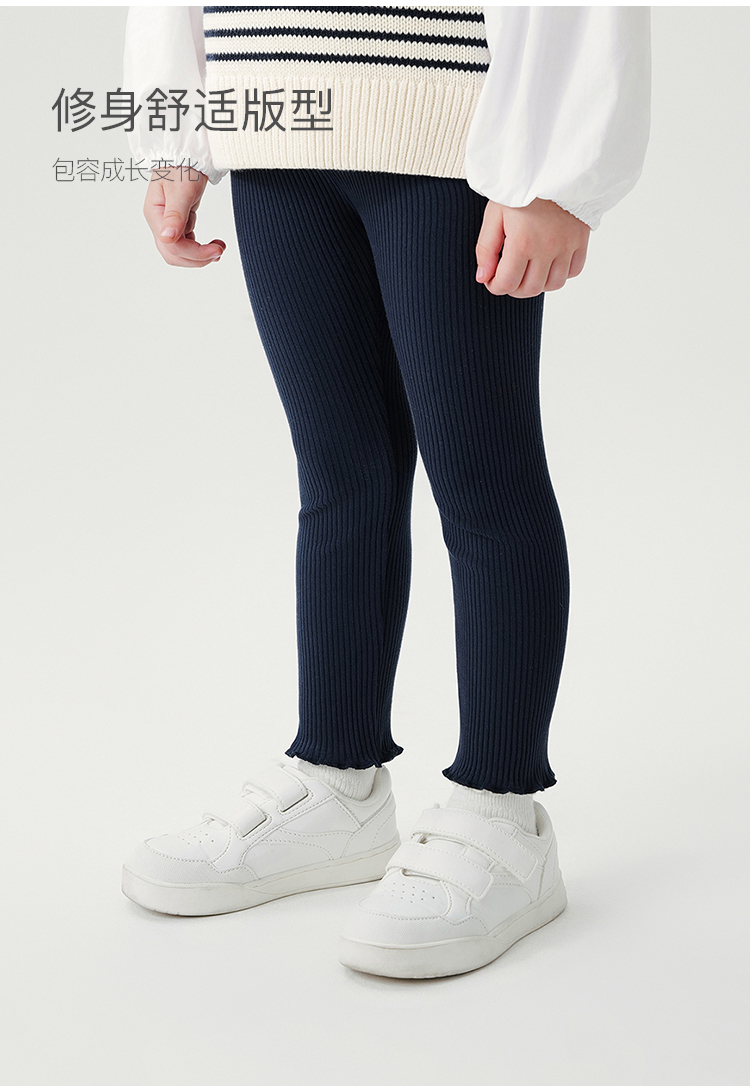 马克珍妮女童花边腰弹力针织打底裤儿童裤子2024年秋装新款241305