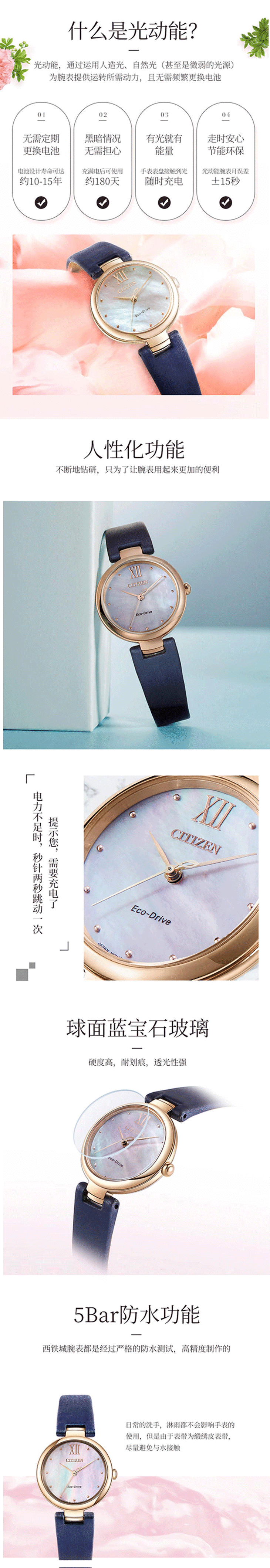 西铁城日本官方正品防水时尚光动能女表EM0533-15D