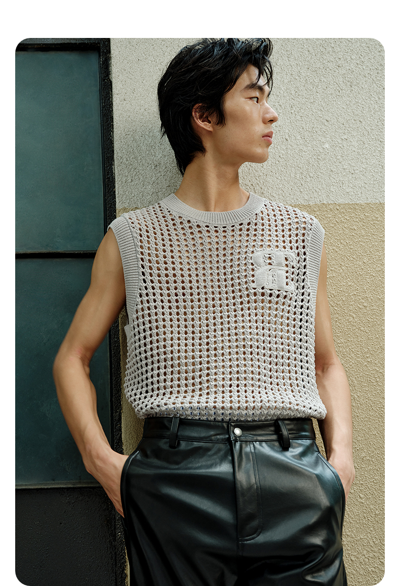 GXG男装 灰色圆领时尚图案内搭背心25年春热卖G25X161001