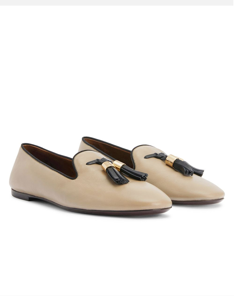 Giuseppe Zanotti 女士皮革流苏乐福鞋 卡其色 I460002002