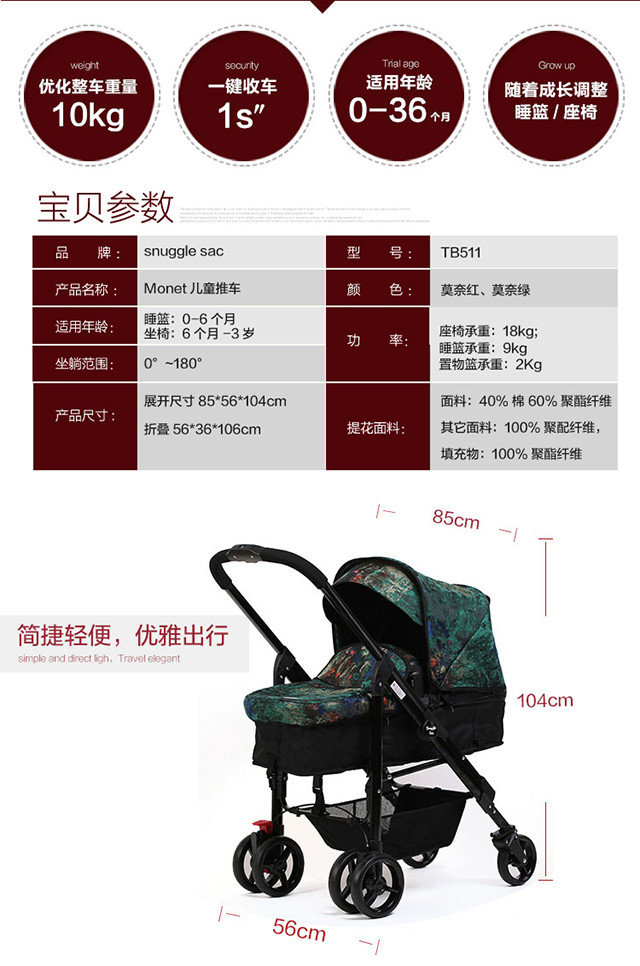 红点设计大奖 | 英国 Snuggle Sac 莫奈大师睡莲系列儿童推车 婴儿车 多功能时尚高景观推车