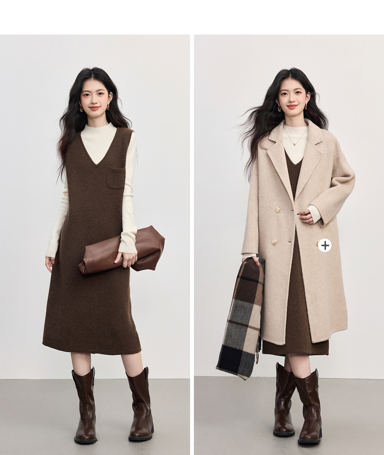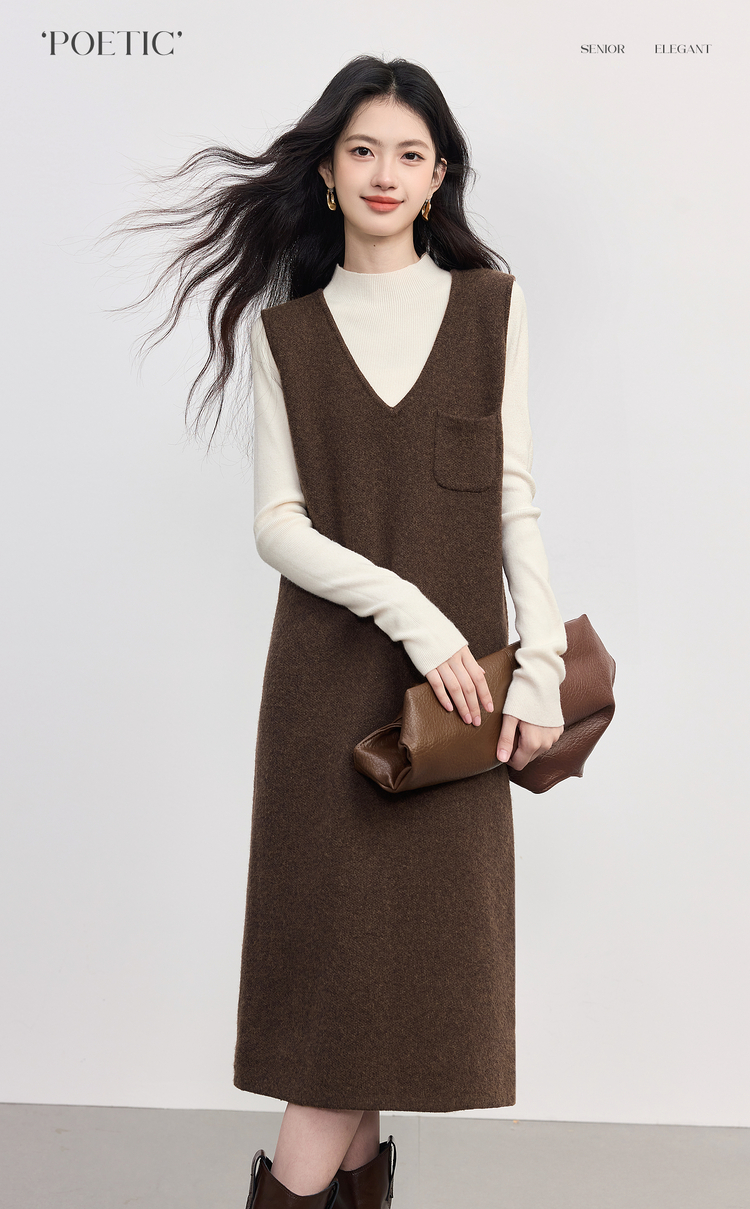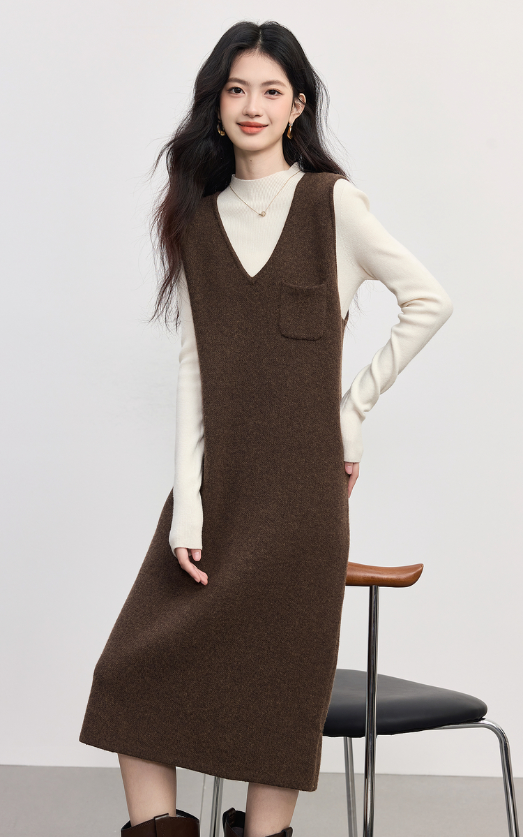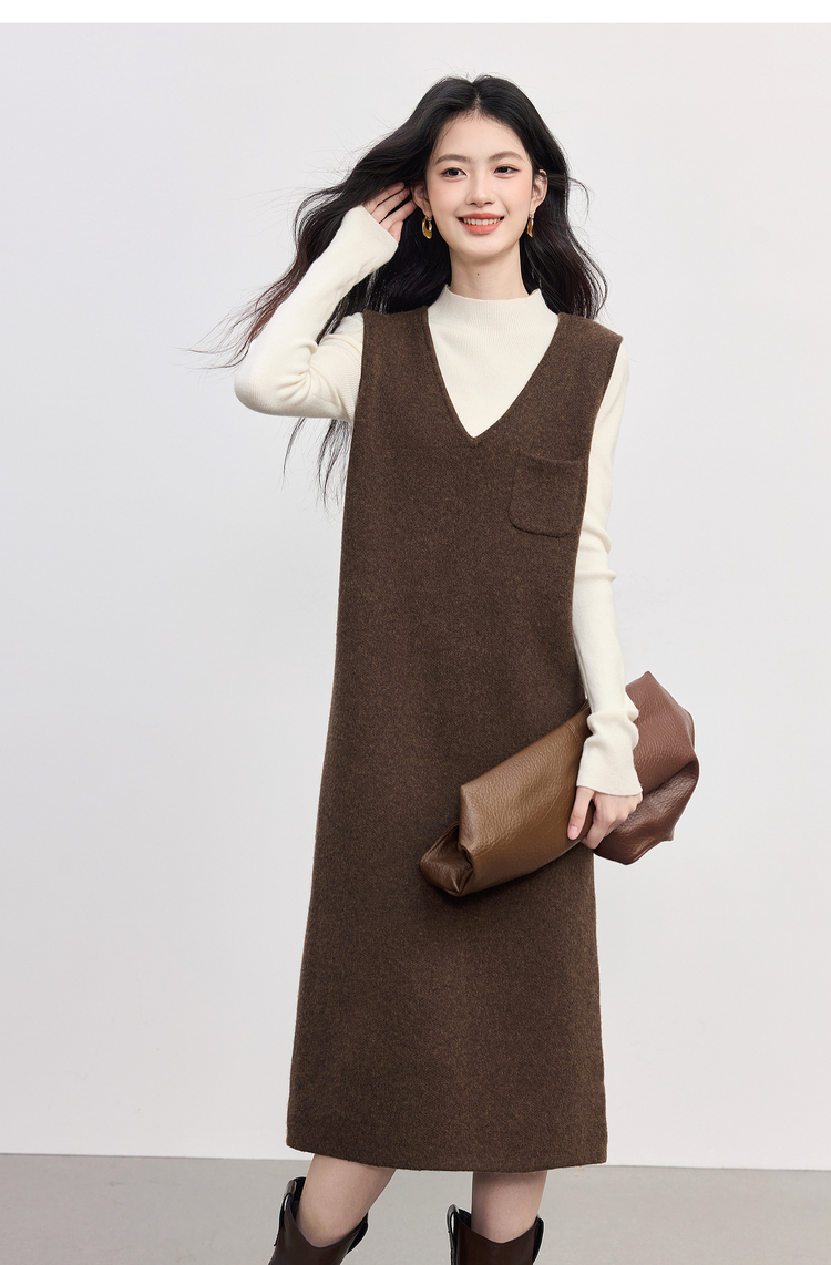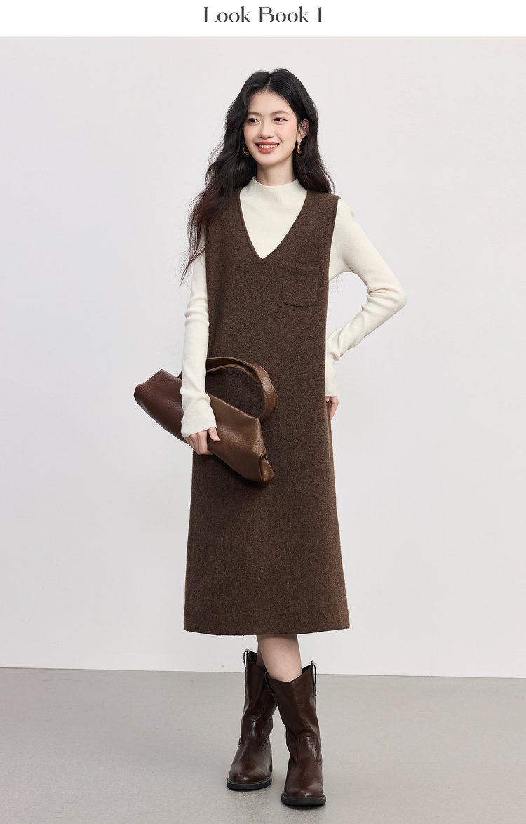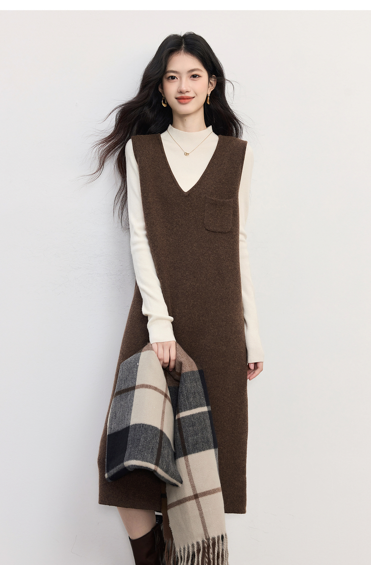 【10/1新品】熙世界法式V领针织背心裙女2025秋冬新款宽松慵懒羊毛无袖连衣裙