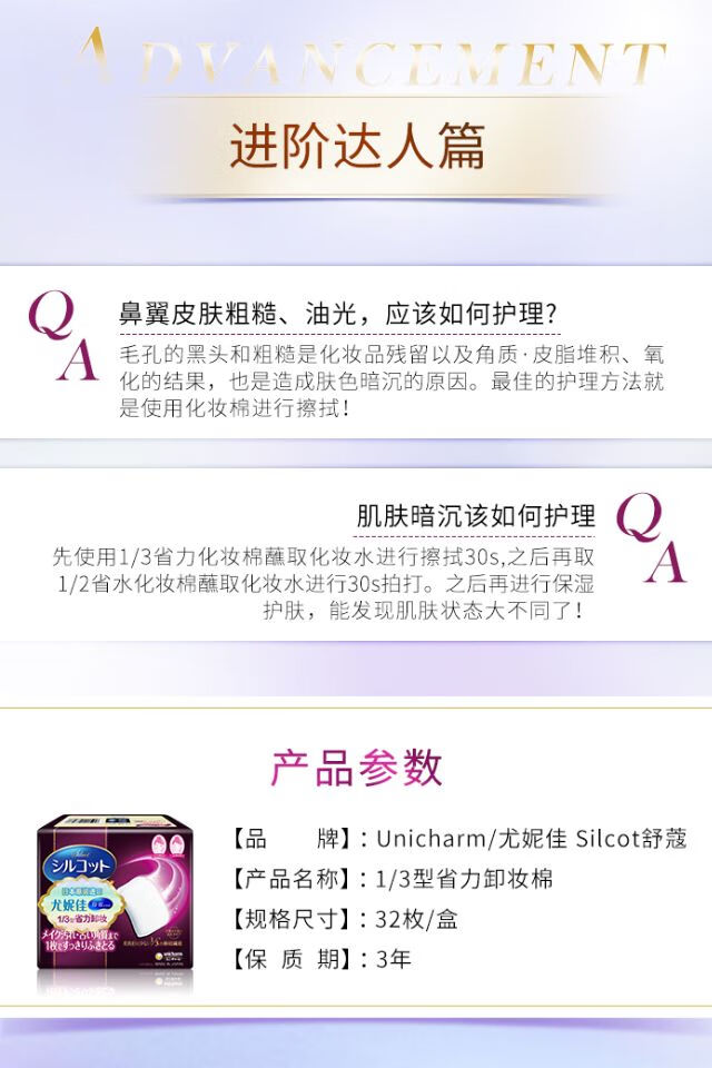 尤妮佳 silcot化妆棉 1/3省水卸妆棉 32枚 逼期清货