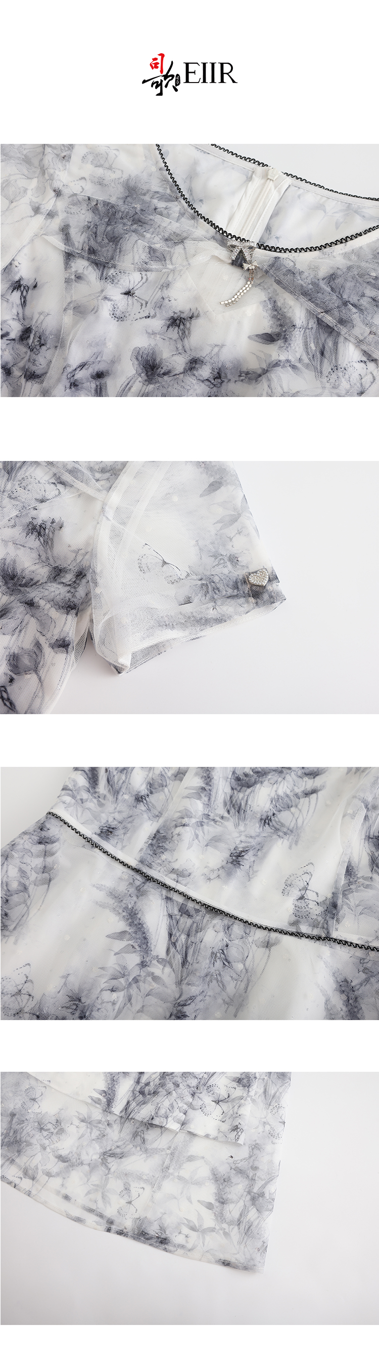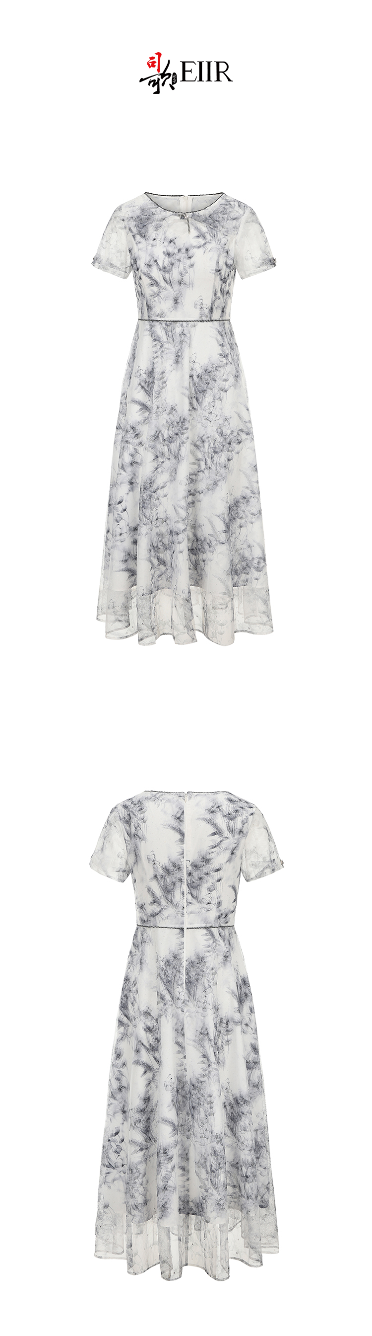 司歌网纱印花连衣群短袖圆领显瘦EA891341