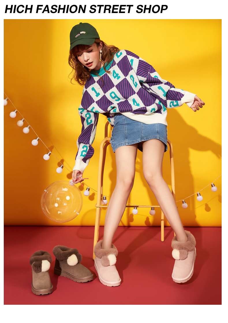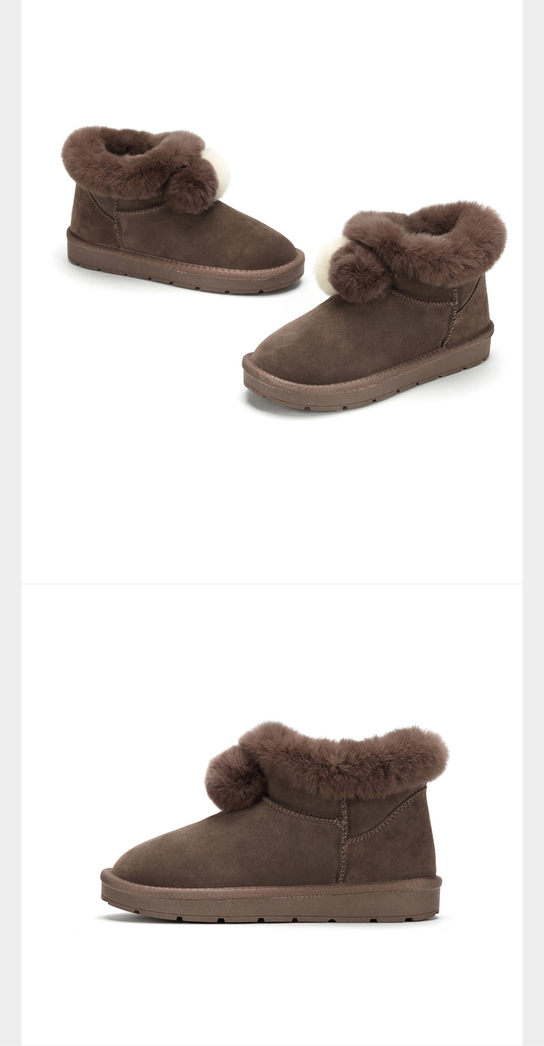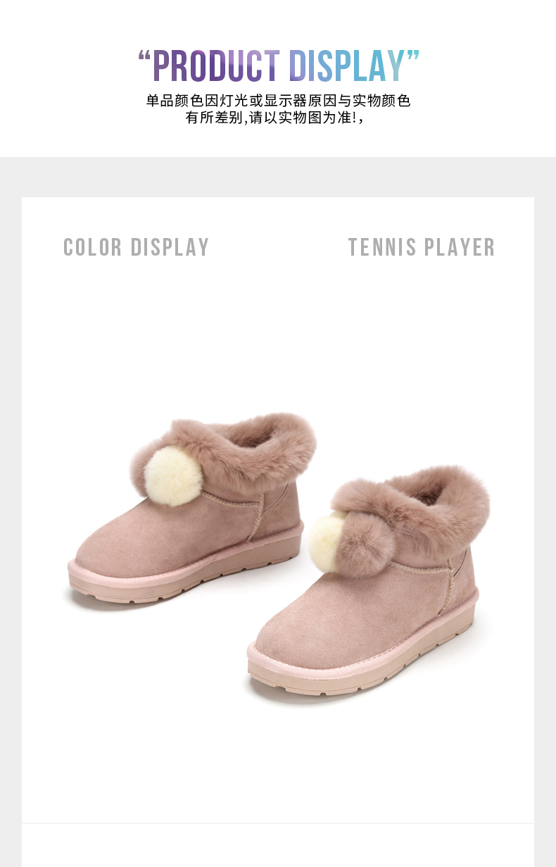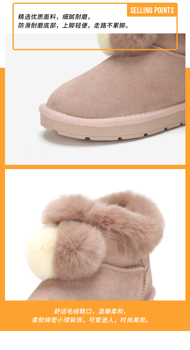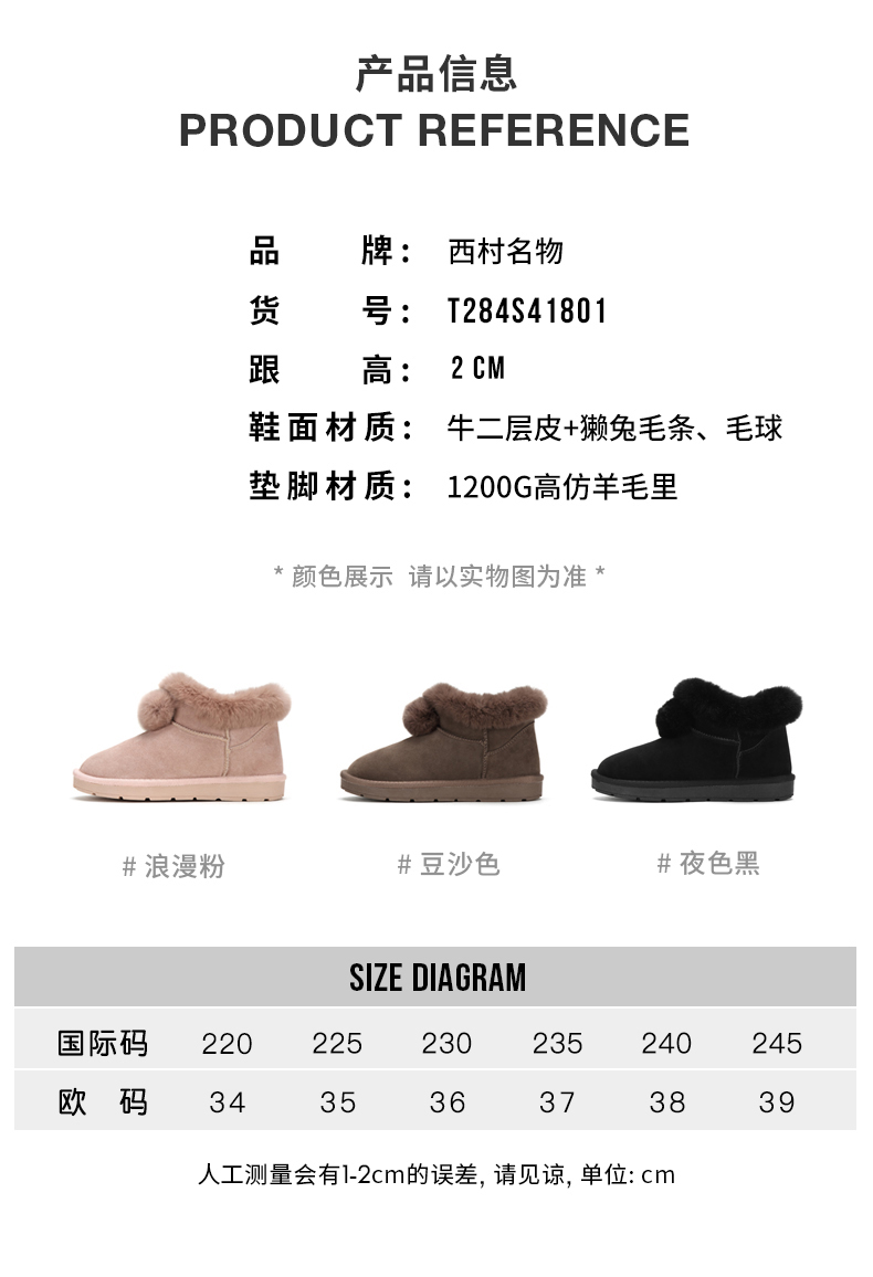 西村名物加厚雪地靴女冬季新款平底毛毛球雪地靴短靴女T284S41801