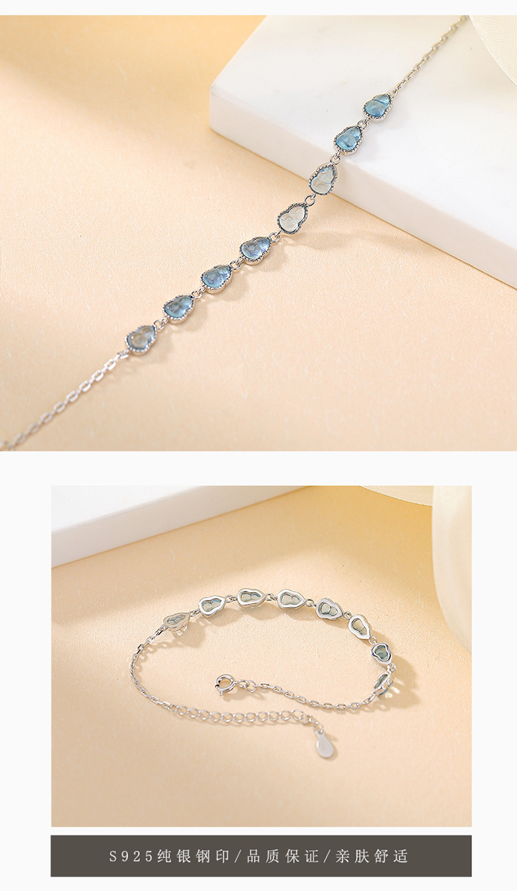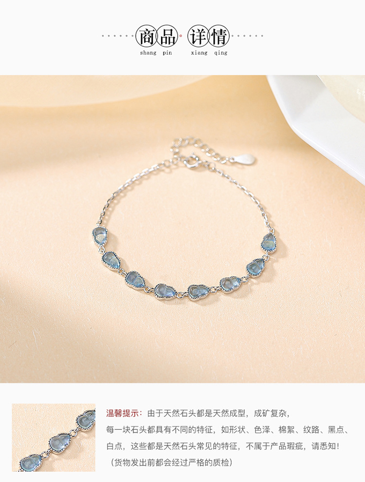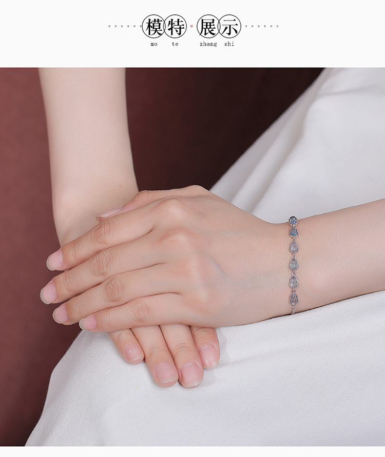 【葫芦醉舞】S925纯银葫芦福禄齿纹海蓝宝手链【CW-SL11842】