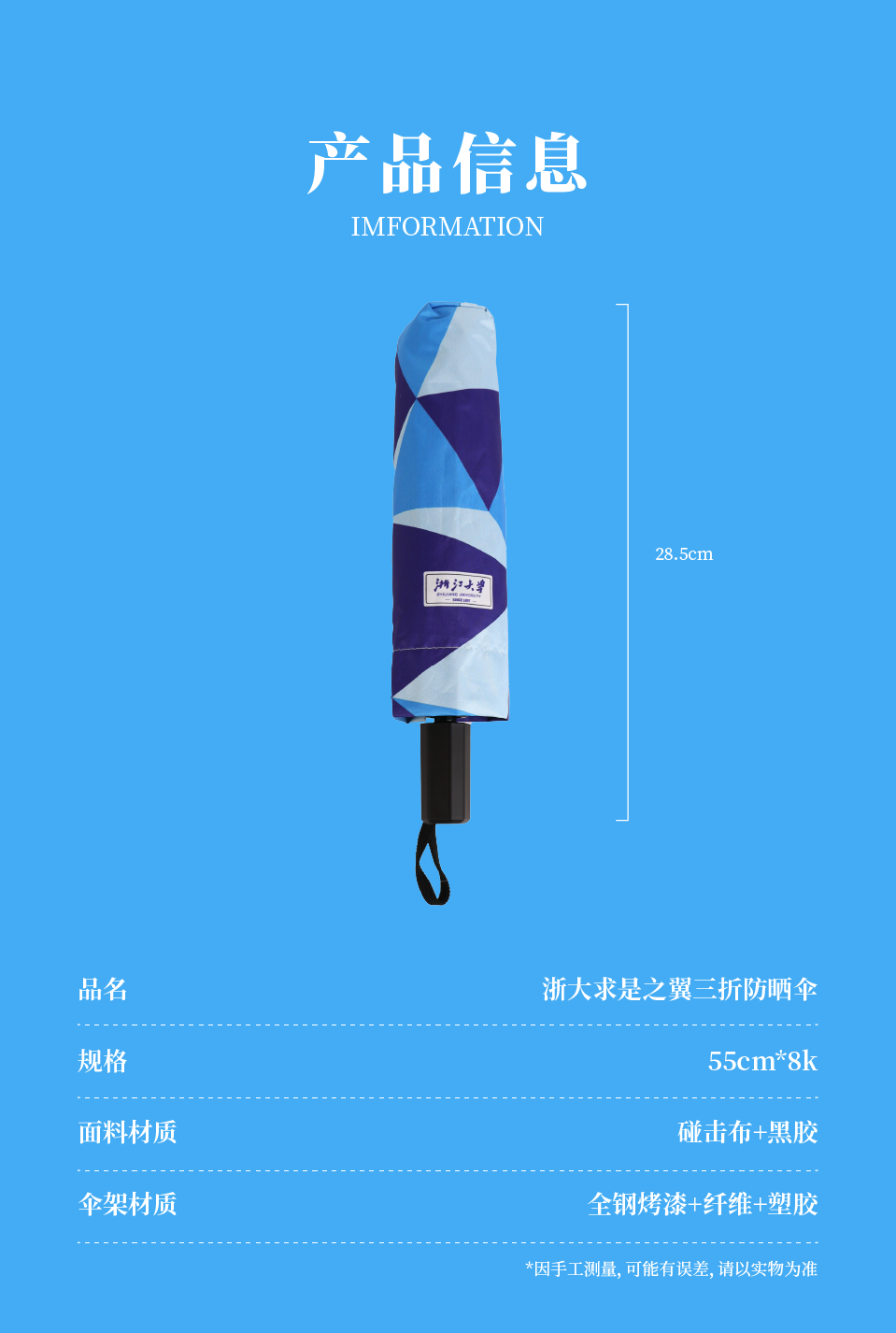 【浙大文创】浙大求是之翼三折防晒伞