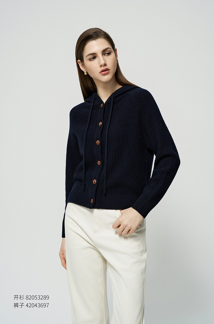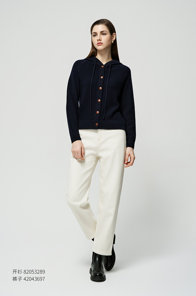 【粗棒针连帽开衫】羊绒世家秋冬新品女士100%山羊绒针织开衫外套