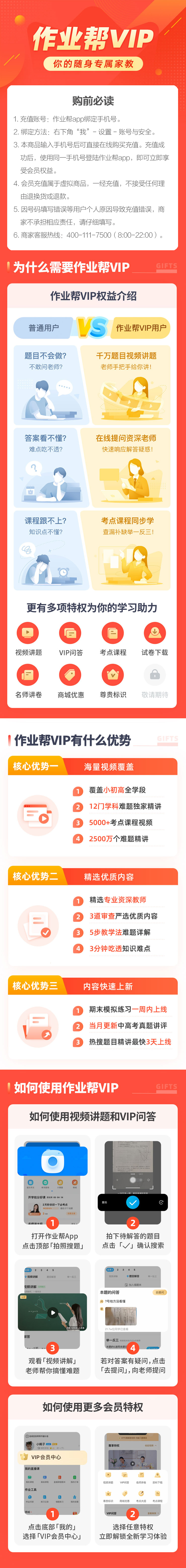 作业帮VIP会员3个月季卡 智能学习助手 课程名师讲解 自动充值 填手机号