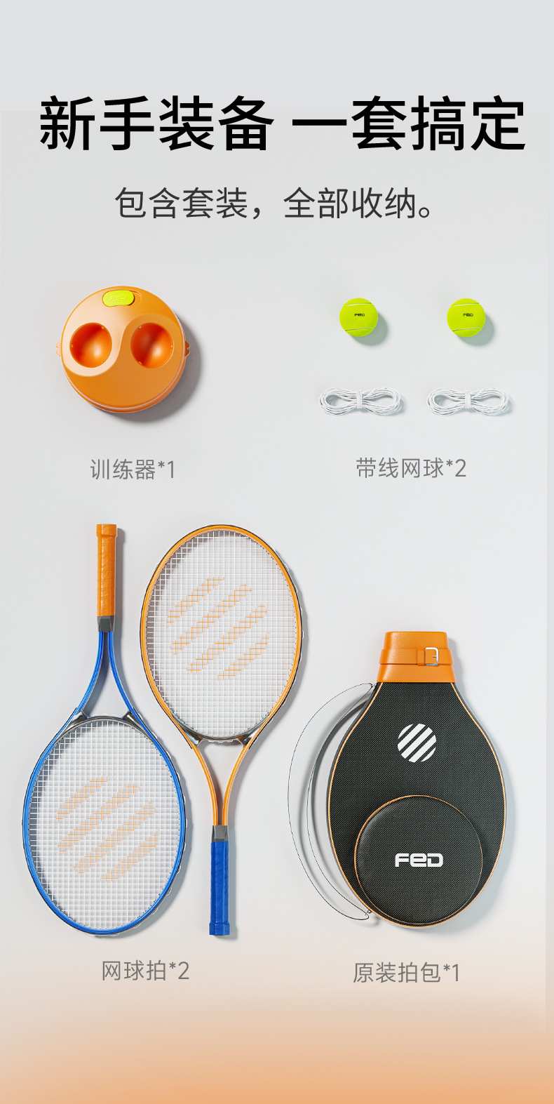 fed网球训练器单人打回弹带线初学者一个人专业网球拍儿童套装初学者套装