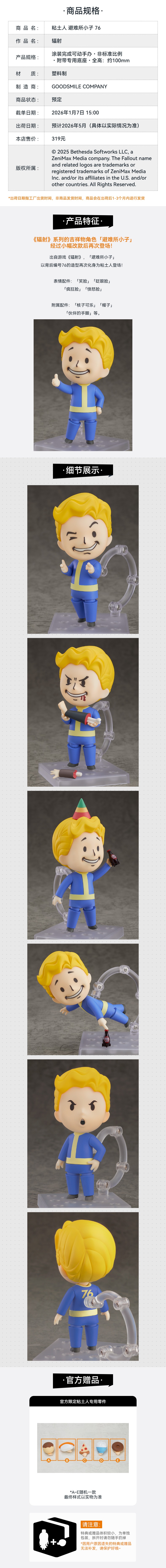 【GSC预售定金】粘土人 避难所小子 76 辐射 手办模玩