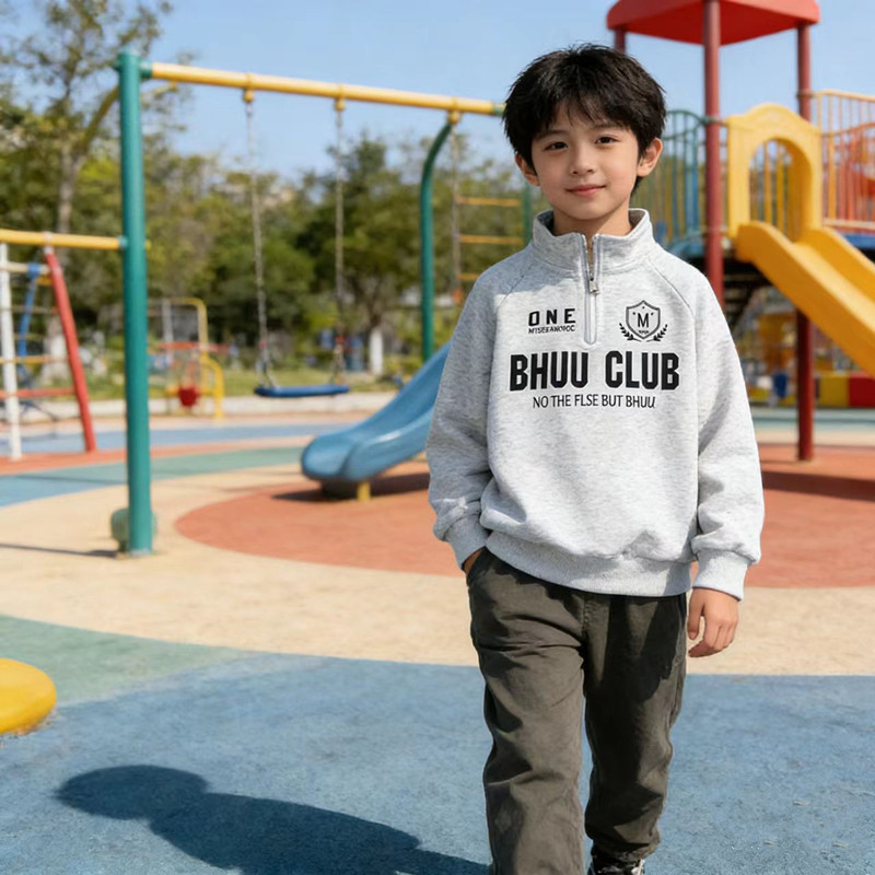 巧豆熊儿童卫衣春秋季新款男女童上衣中大童洋气运动套头衫立领长袖童装90-170★娃娃优选