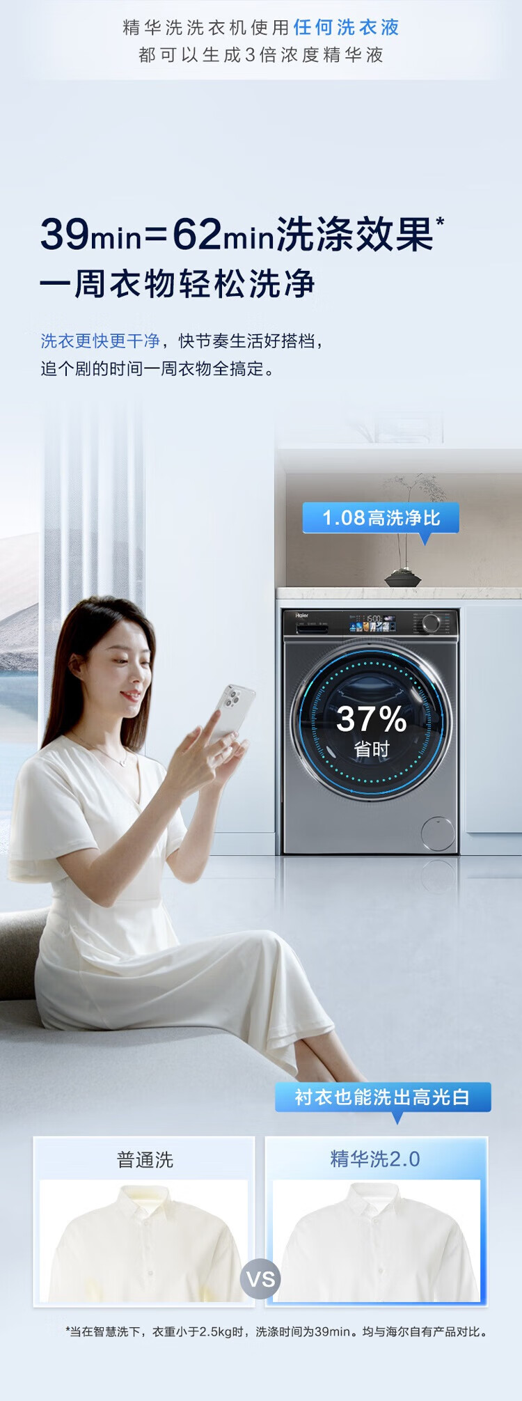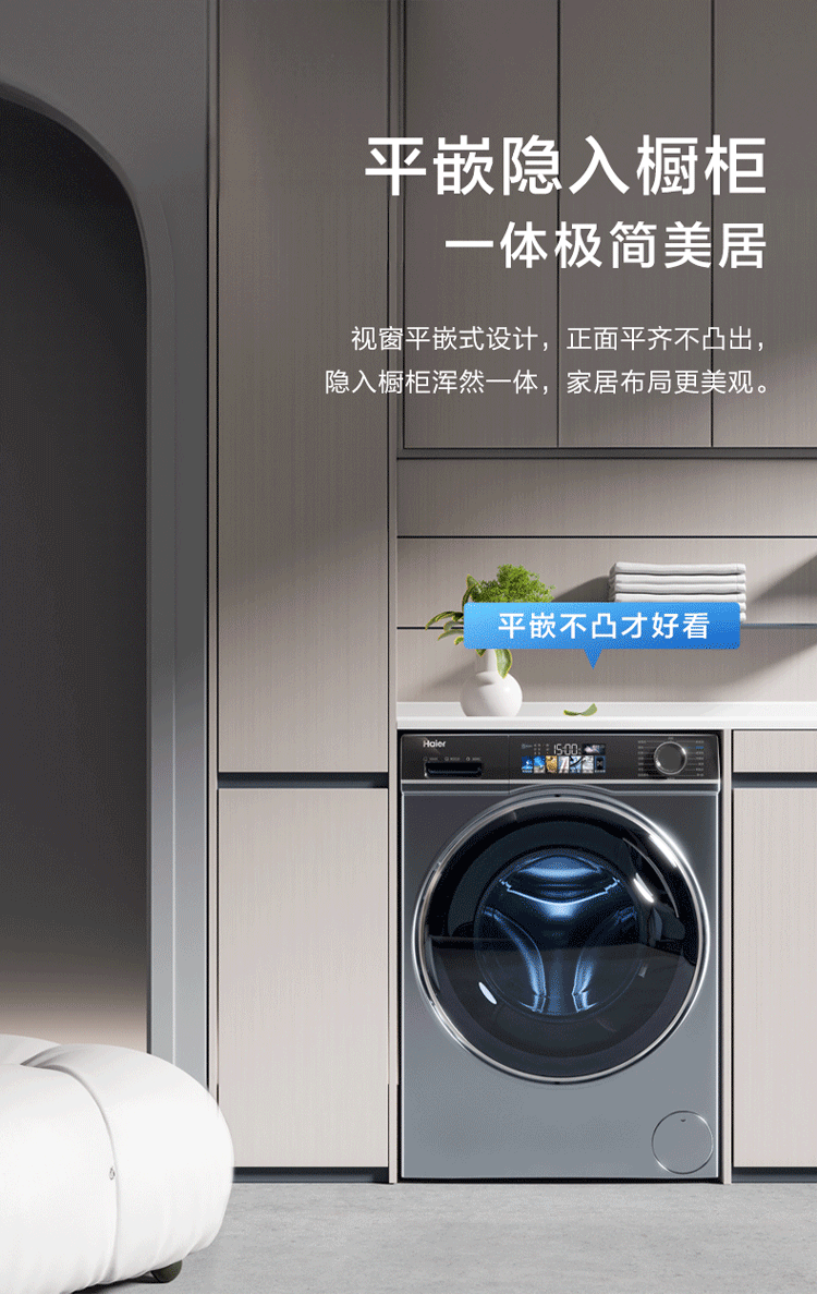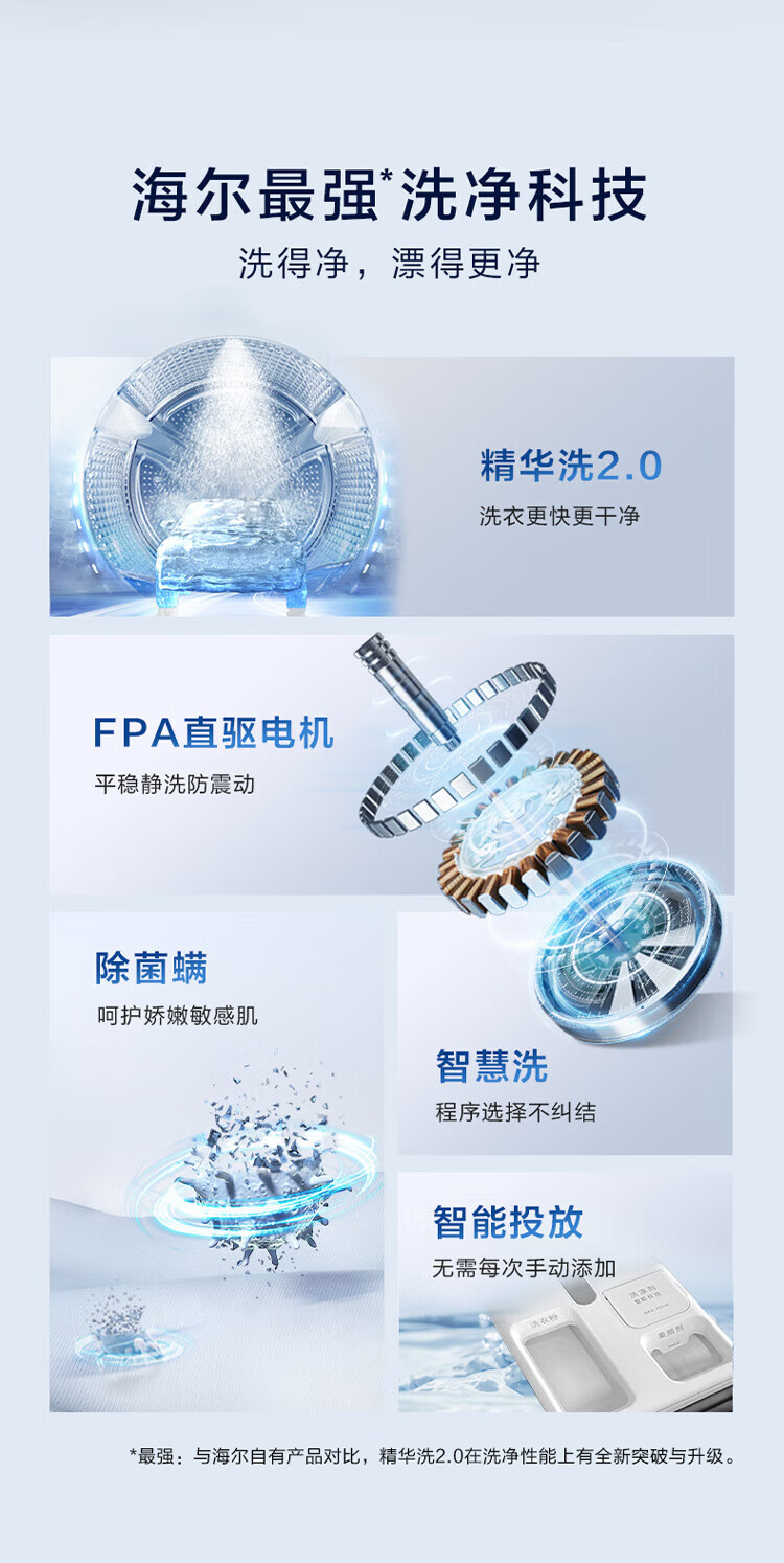 海尔(Haier)【直驱精华洗2.0 云溪MATE82】10公斤滚筒洗衣机全自动 彩屏 纯平嵌入+智能投放+除菌螨+羽绒洗 直驱精华洗单洗款