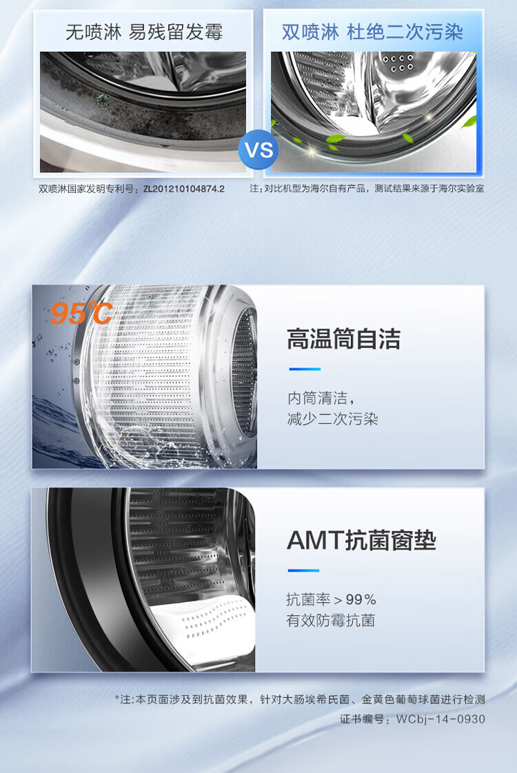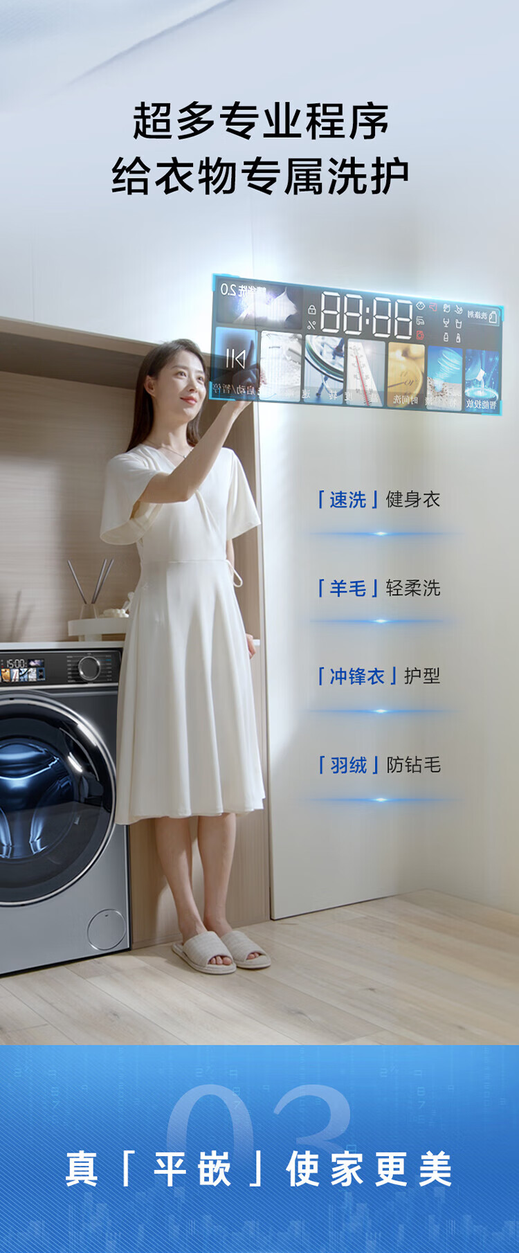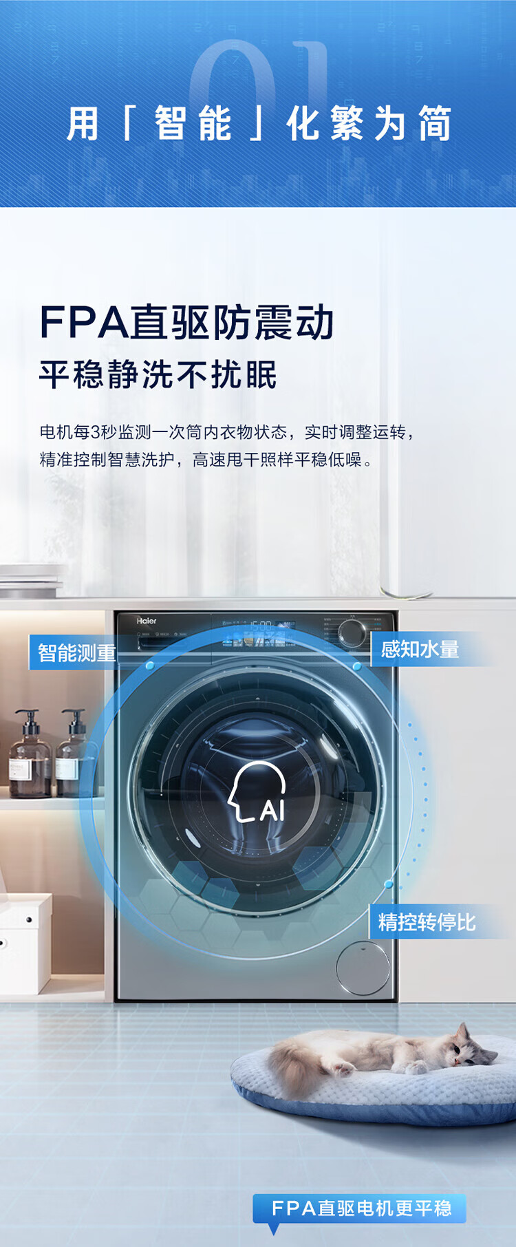 海尔(Haier)【直驱精华洗2.0 云溪MATE82】10公斤滚筒洗衣机全自动 彩屏 纯平嵌入+智能投放+除菌螨+羽绒洗 直驱精华洗单洗款