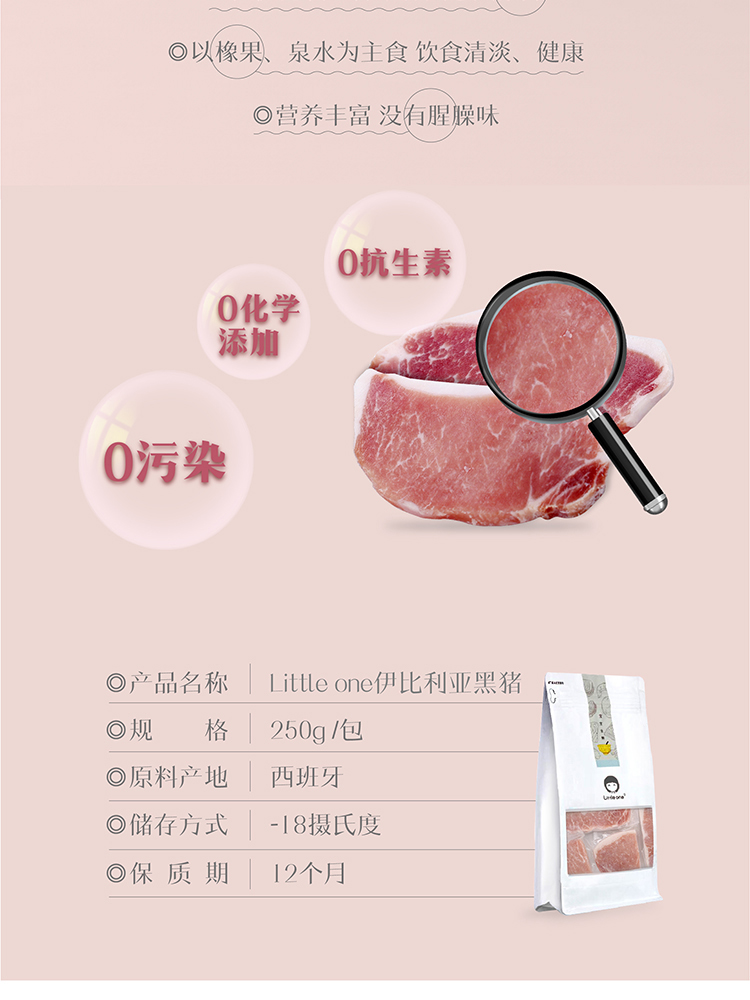 little one萌小丸 西班牙伊比利亚黑猪肉脊背 宝宝生鲜辅食无添加