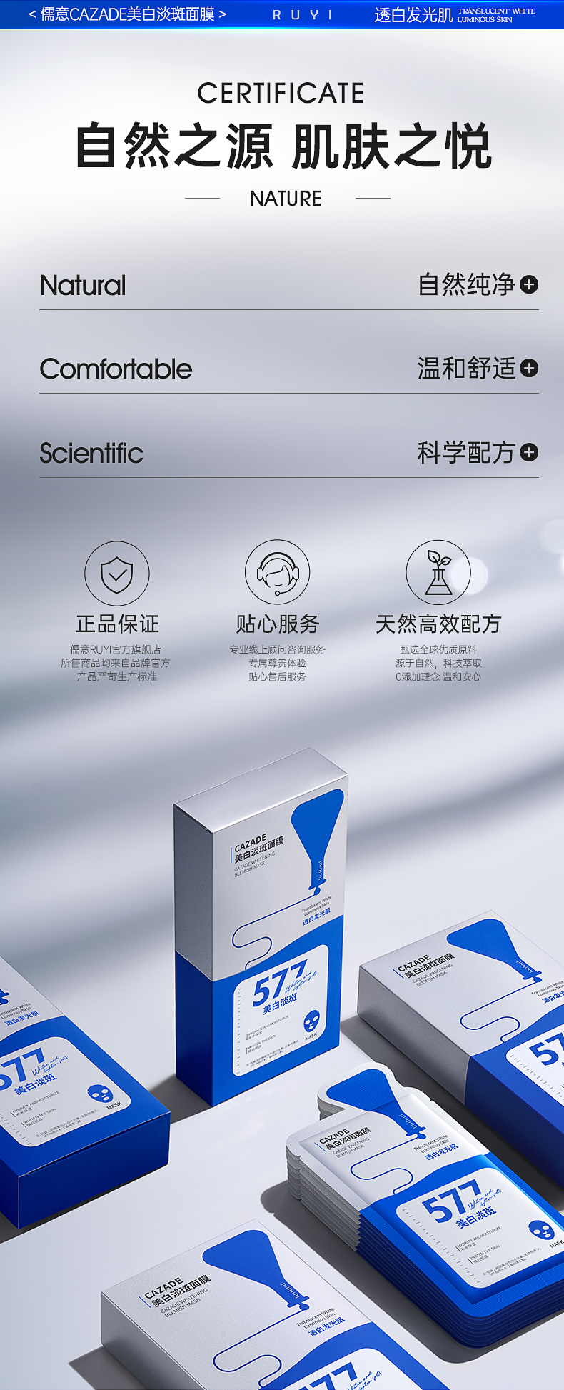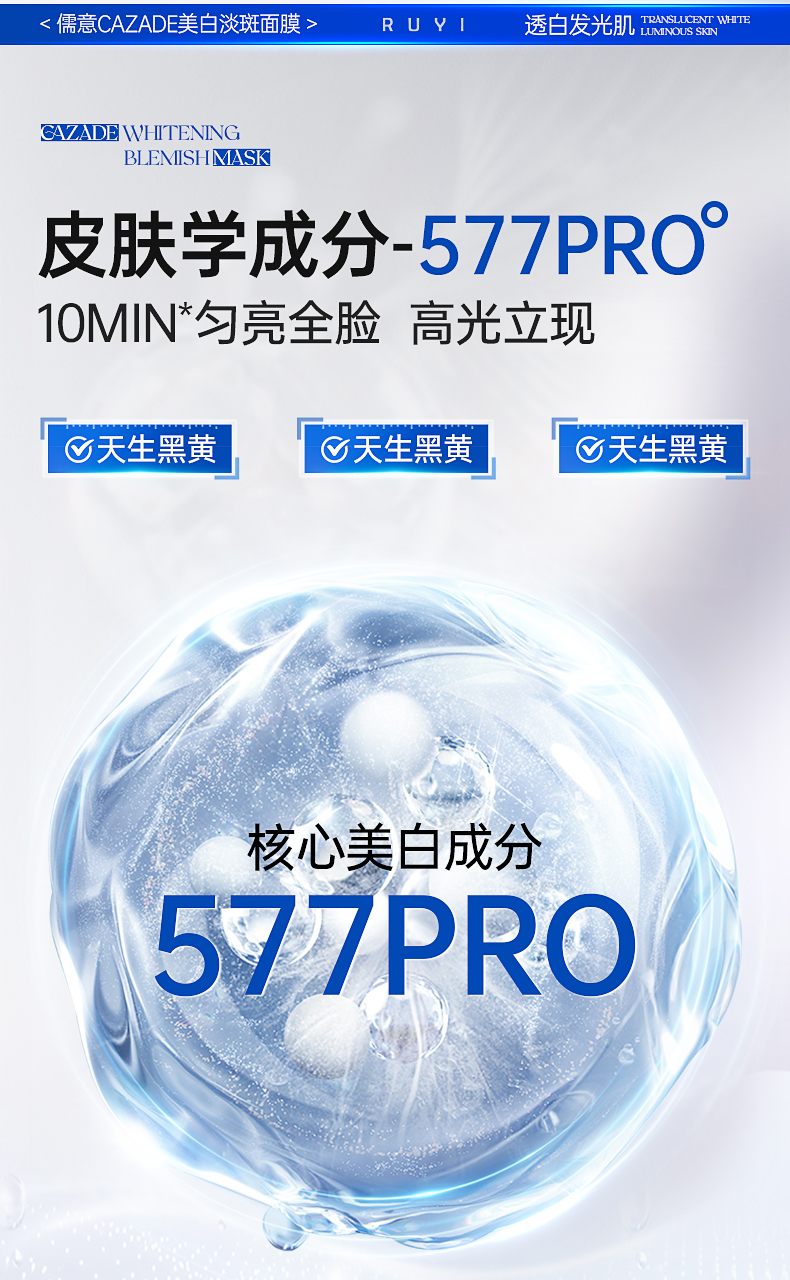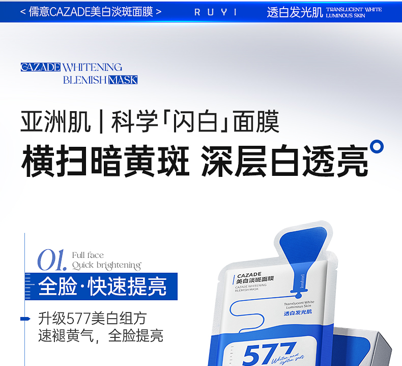 儒意美白祛斑面10片/盒 577美白面膜淡斑去黄补水保湿提亮肤色熬夜急救|儒意官方商城