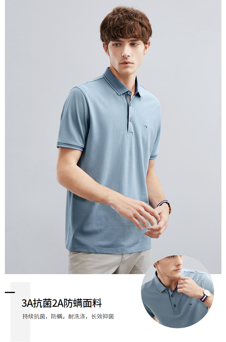 【3A抗菌/2A防螨】柒牌男士短袖polo衫夏季薄款多色翻领上衣124T70160