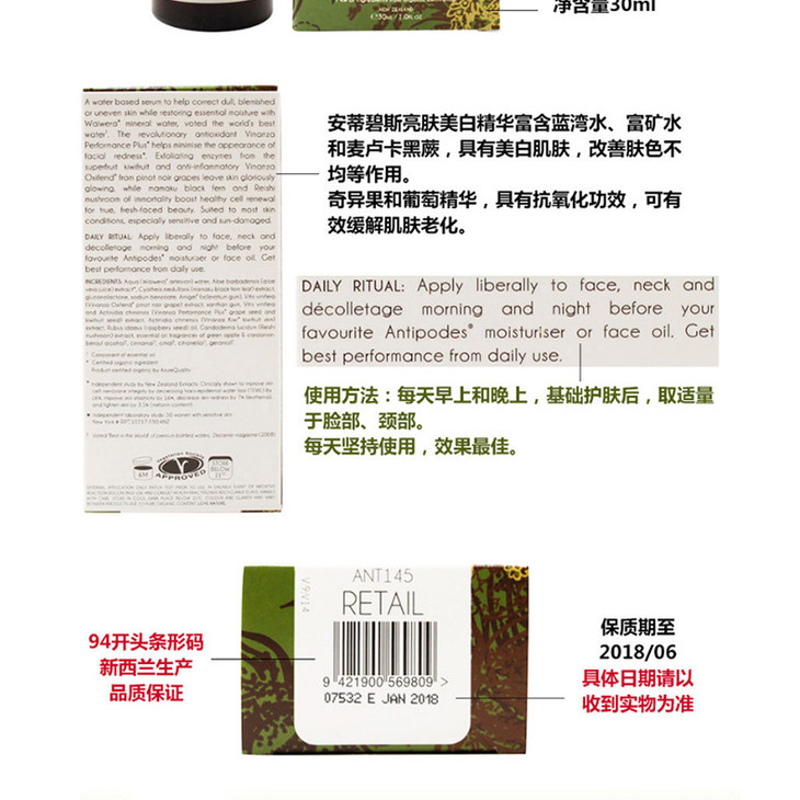 【新西兰直邮】Antipodes 安蒂碧斯 5日 30ml