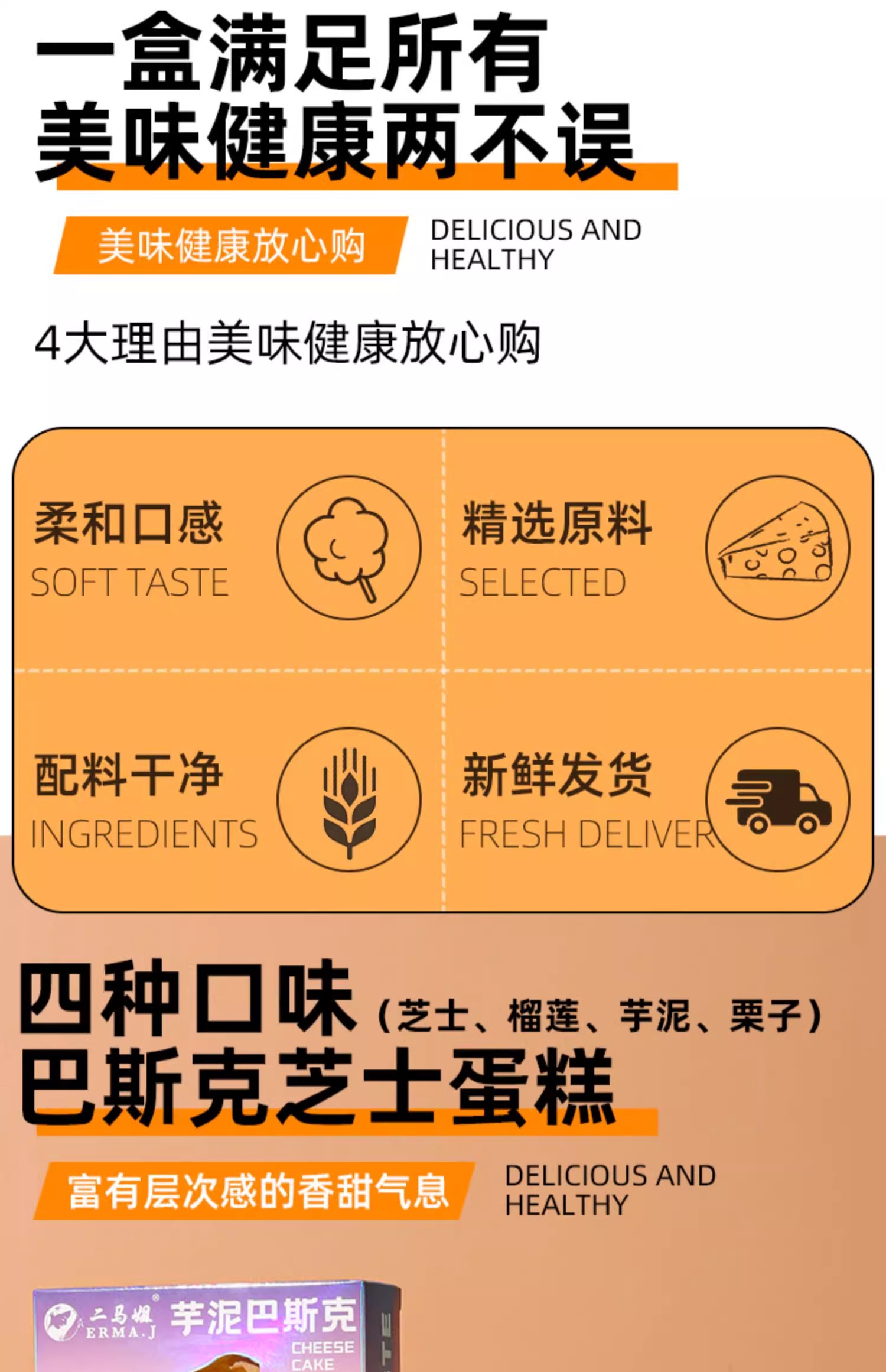 【二马姐 巴斯克蛋糕】 原味经典醇厚,🇲🇾榴莲浓郁香甜,🍠芋泥清新淡雅,🌰板栗温暖独特
