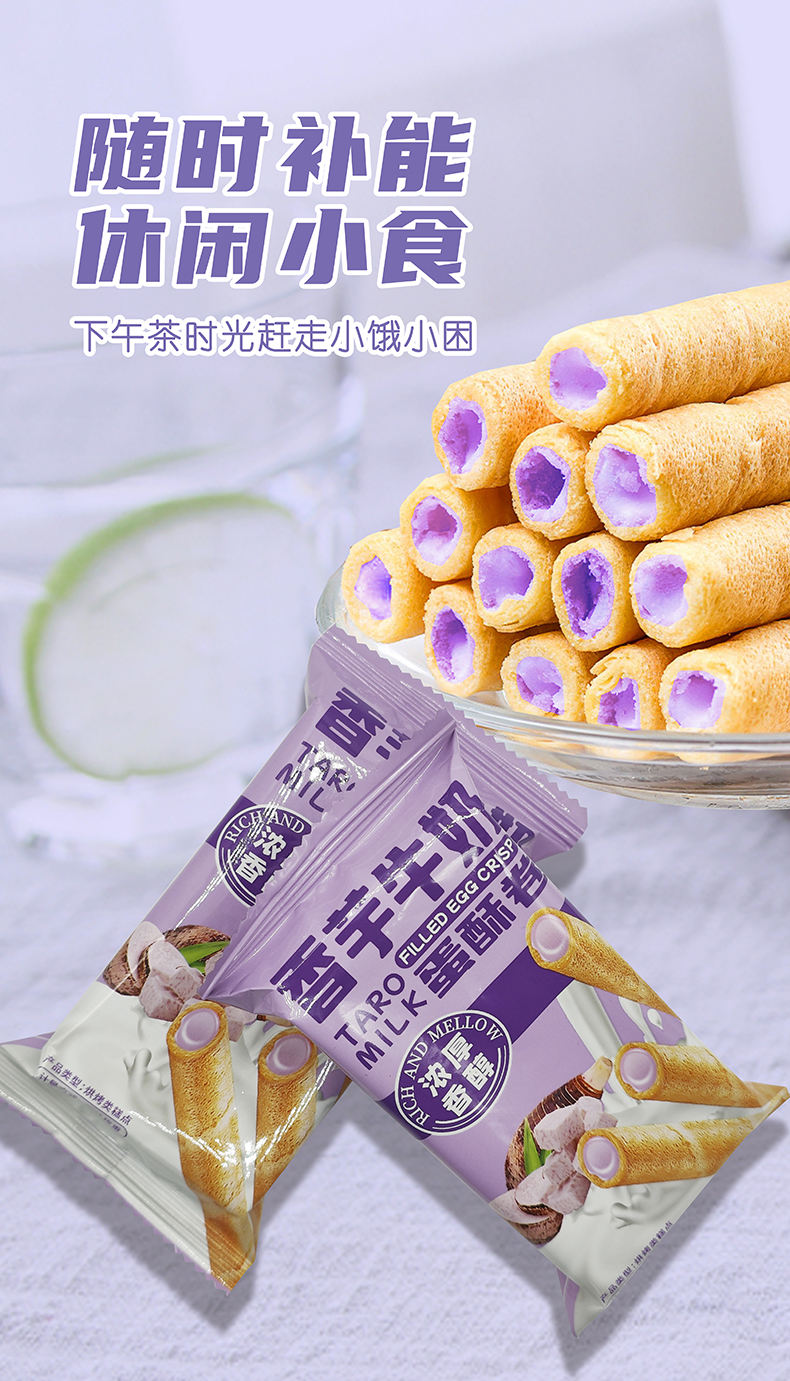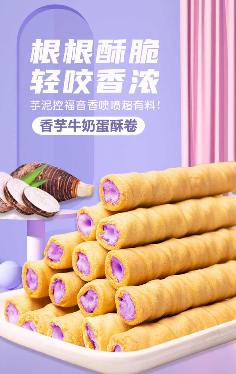 【会员福利9.9元】唛兆香芋牛奶蛋酥卷200g*2箱酥脆芋泥夹心蛋卷开袋即食儿童小零食