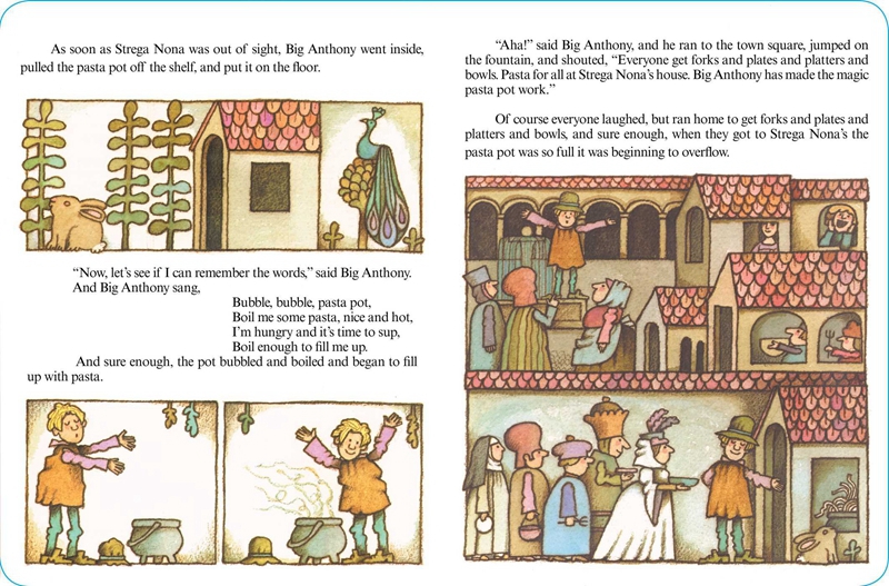 "De Paola's illustrations aptly capture the whimsy of this ancient tale... simple line drawings clearly reveal the agony and ecstasy of pasta power, the muted colors create just the right ambiance for a Medieval village."——The New York Times