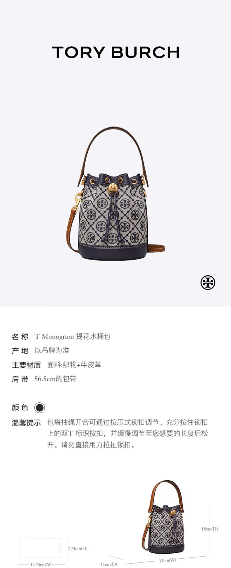 【特惠】【送礼盒礼袋】Tory Burch/汤丽柏琦女士时尚百搭单肩斜挎手提水桶包