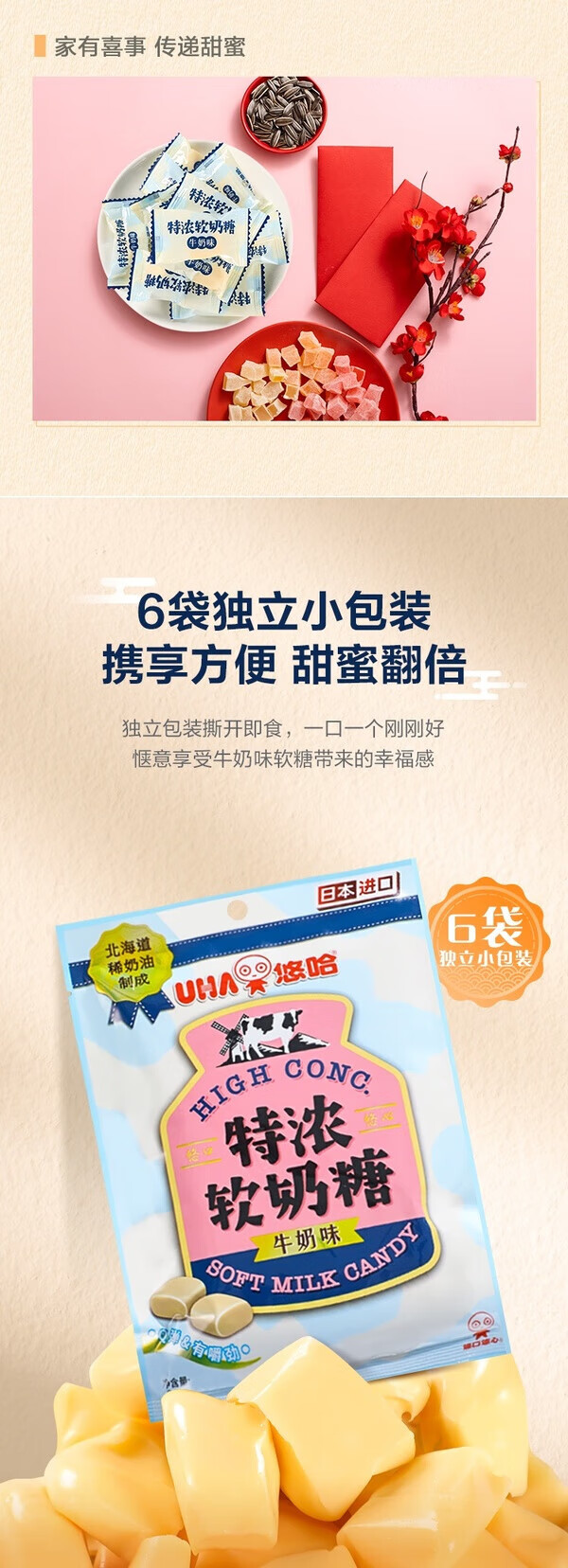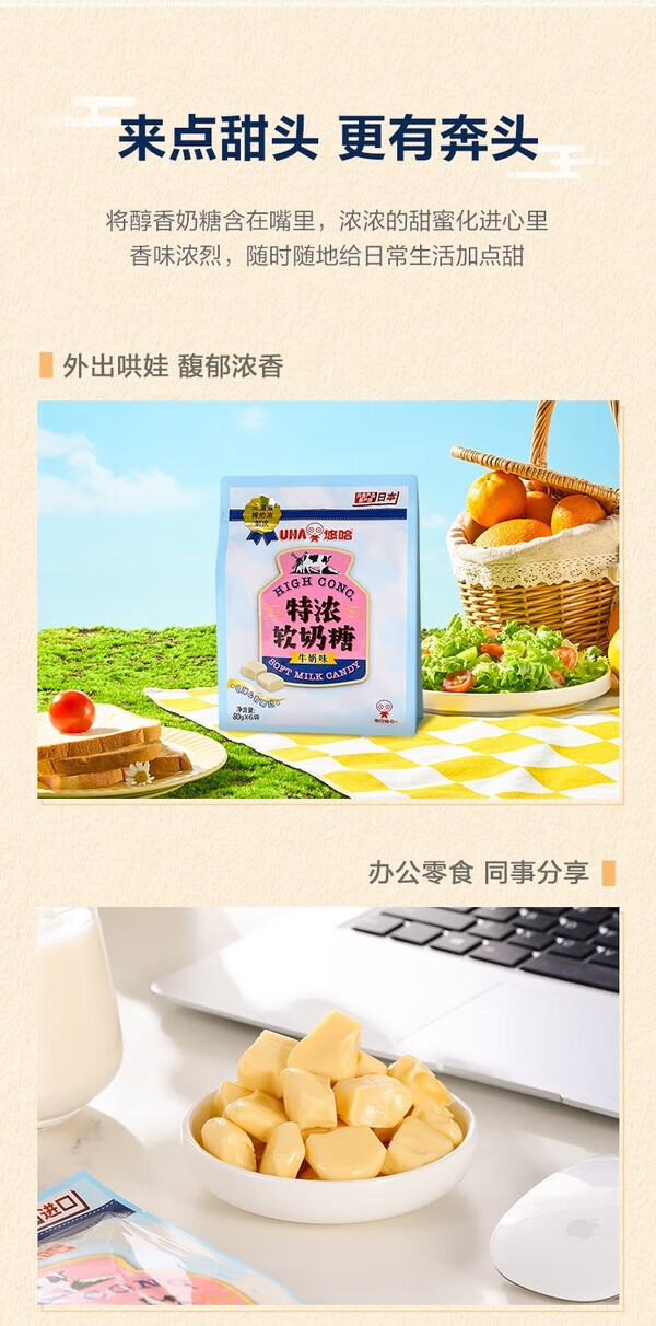 悠哈特浓软奶糖牛奶味80g/064579 软糯Q弹醇香奶味