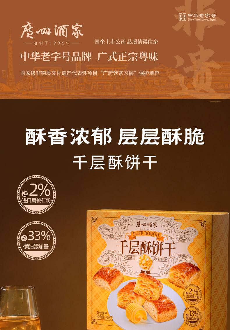 广州酒家 千层酥饼干老字号中式糕点办公室休闲零食下午茶节日送礼