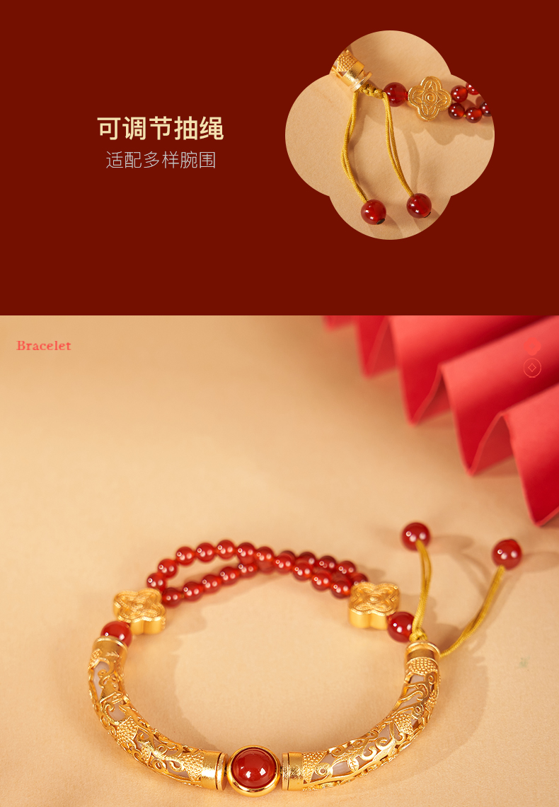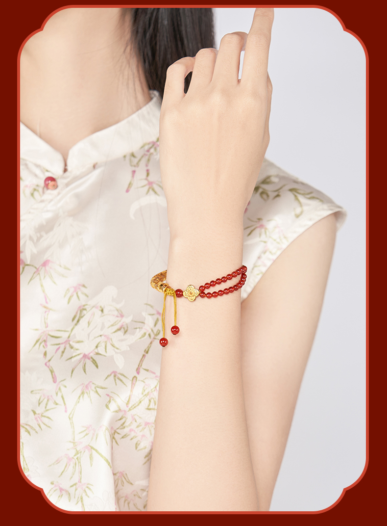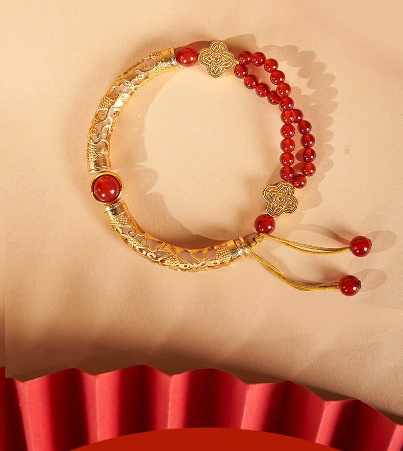 大英博物馆 东方梦境系列 花丝镂空红玛瑙手链